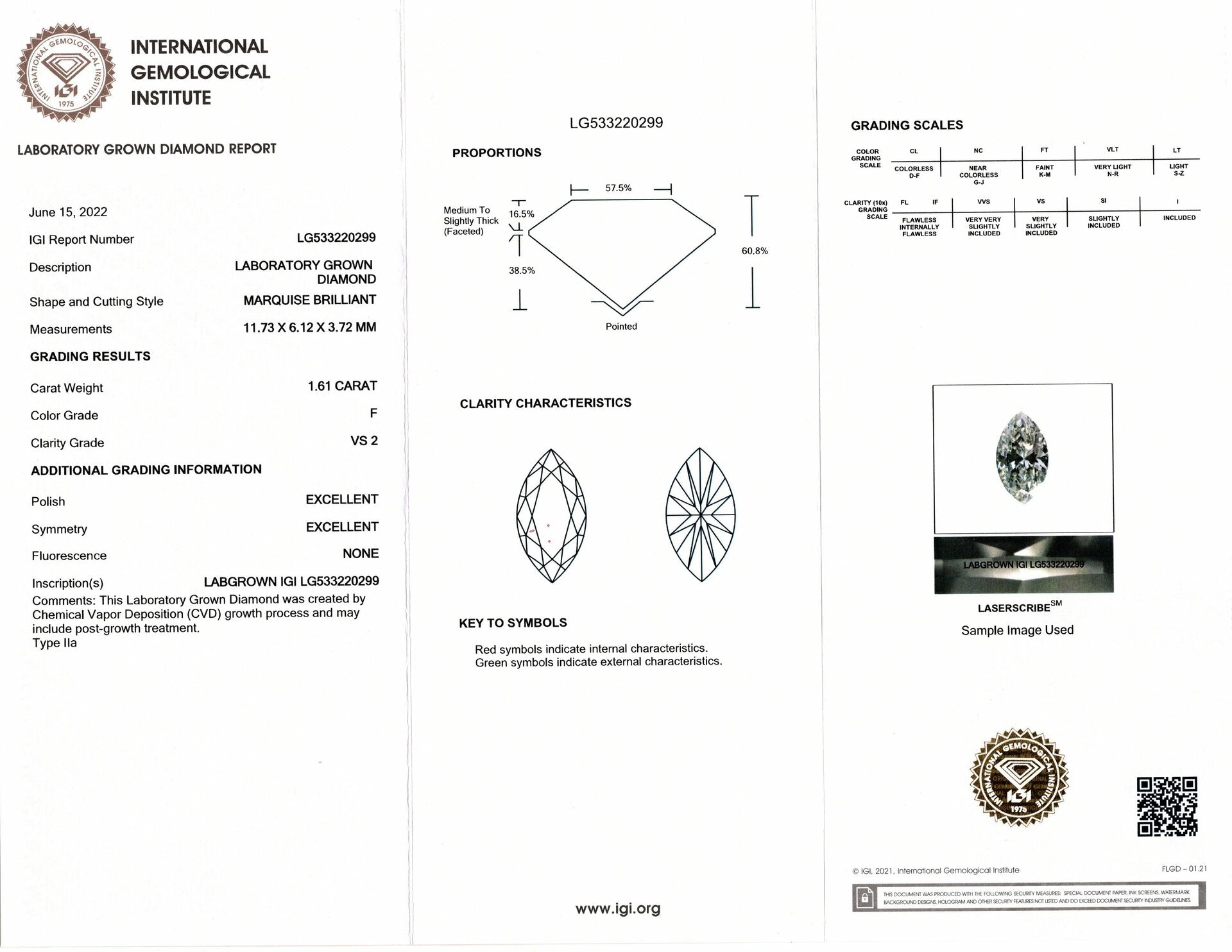 - Colorless and very clean with grades of F VS1