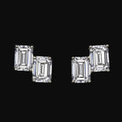 EMERALD CUT LAB CREATED DIAMOND STUD EARRINGS 14k WHITE GOLD CLUSTER MINIMALIST