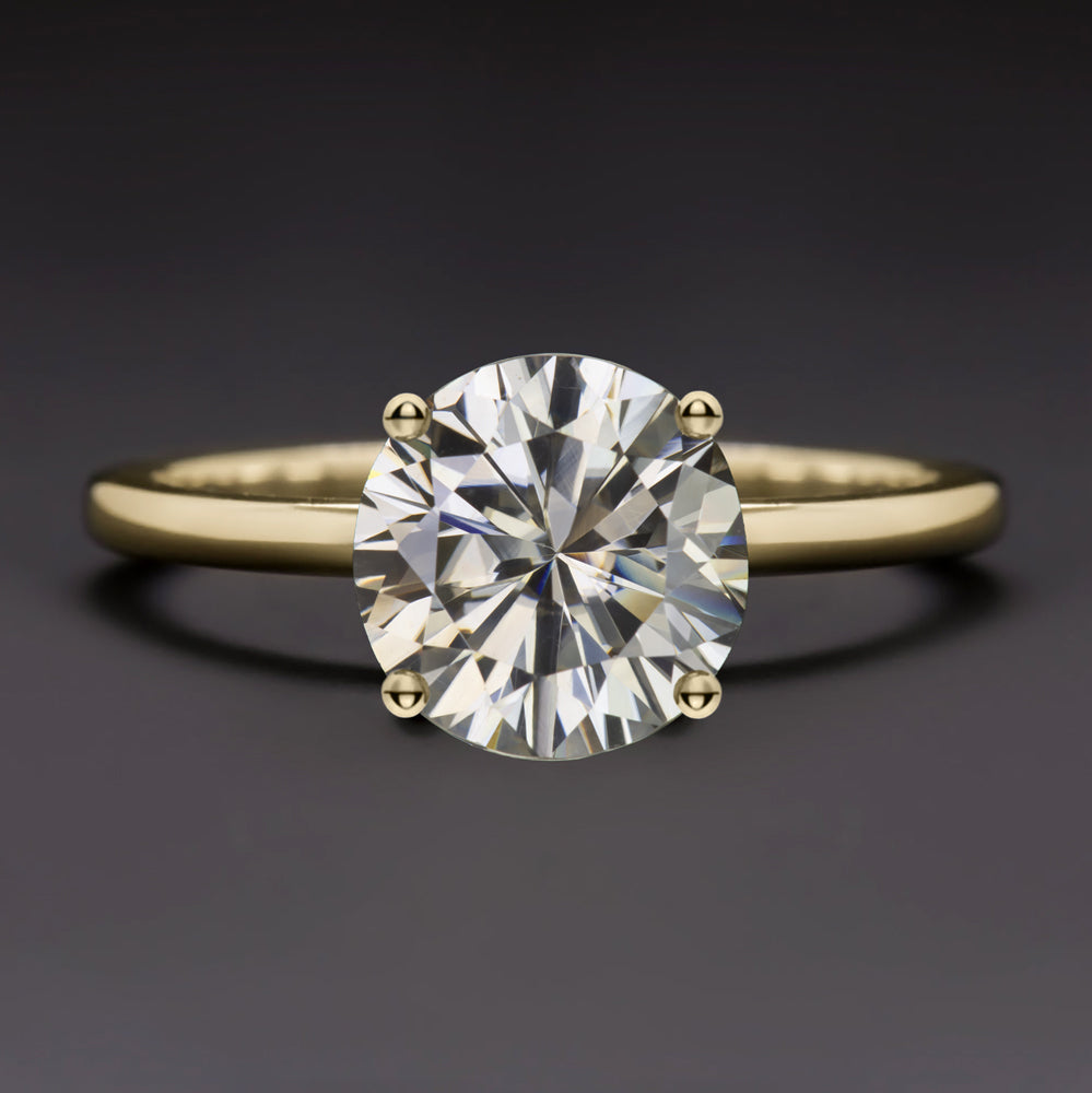 MOISSANITE 14k YELLOW GOLD SOLITAIRE RING ROUND BRILLIANT CUT CLASSIC SIMPLE