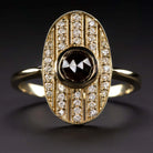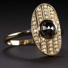 NATURAL DIAMOND BLACK SPINEL COCKTAIL RING YELLOW GOLD OVAL SHAPE VINTAGE STYLE