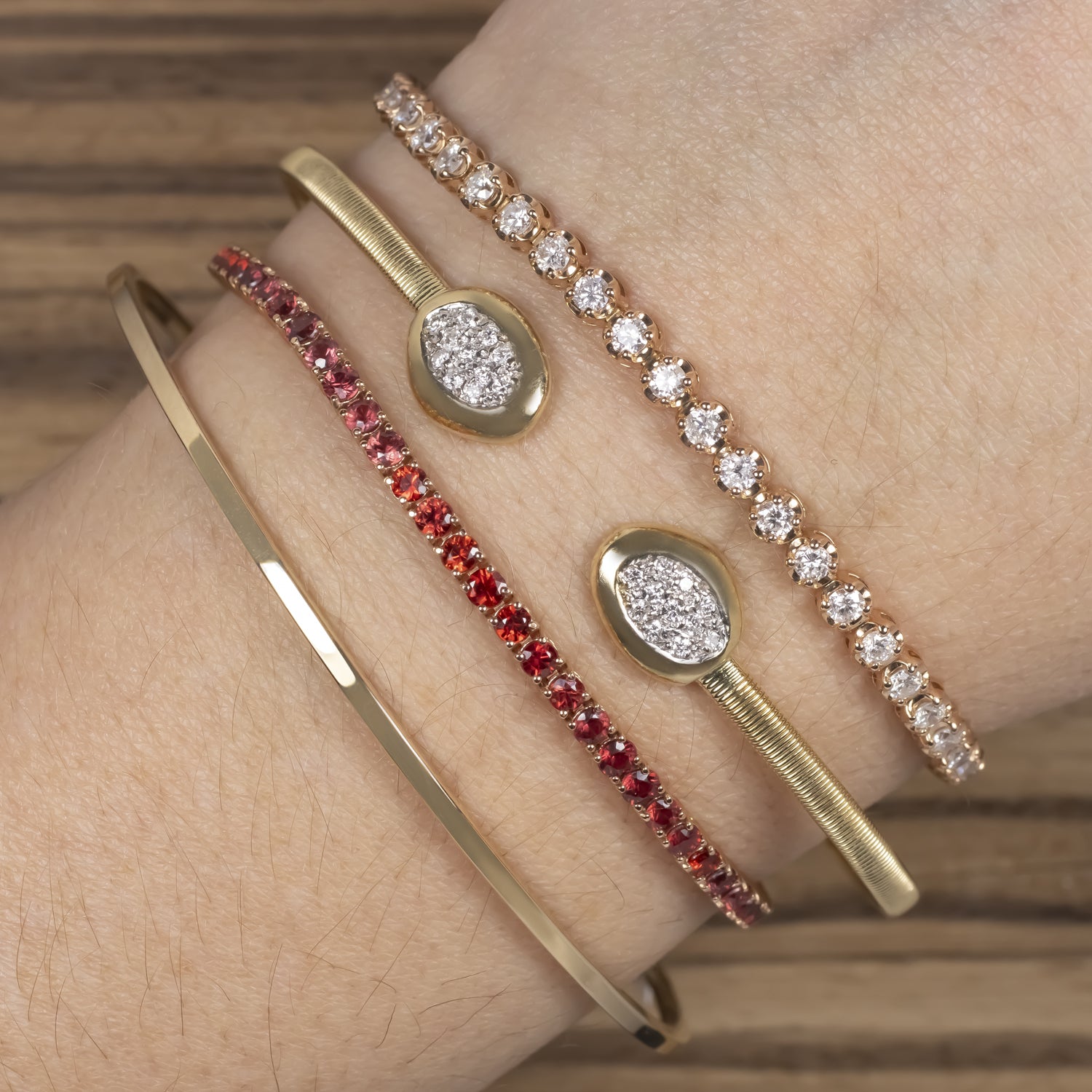 This 14k yellow gold bangle bracelet has a classic, minimalist design