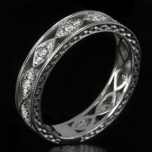 VINTAGE STYLE G VS DIAMOND PLATINUM WEDDING BAND WIDE STACKING RING ENGRAVED