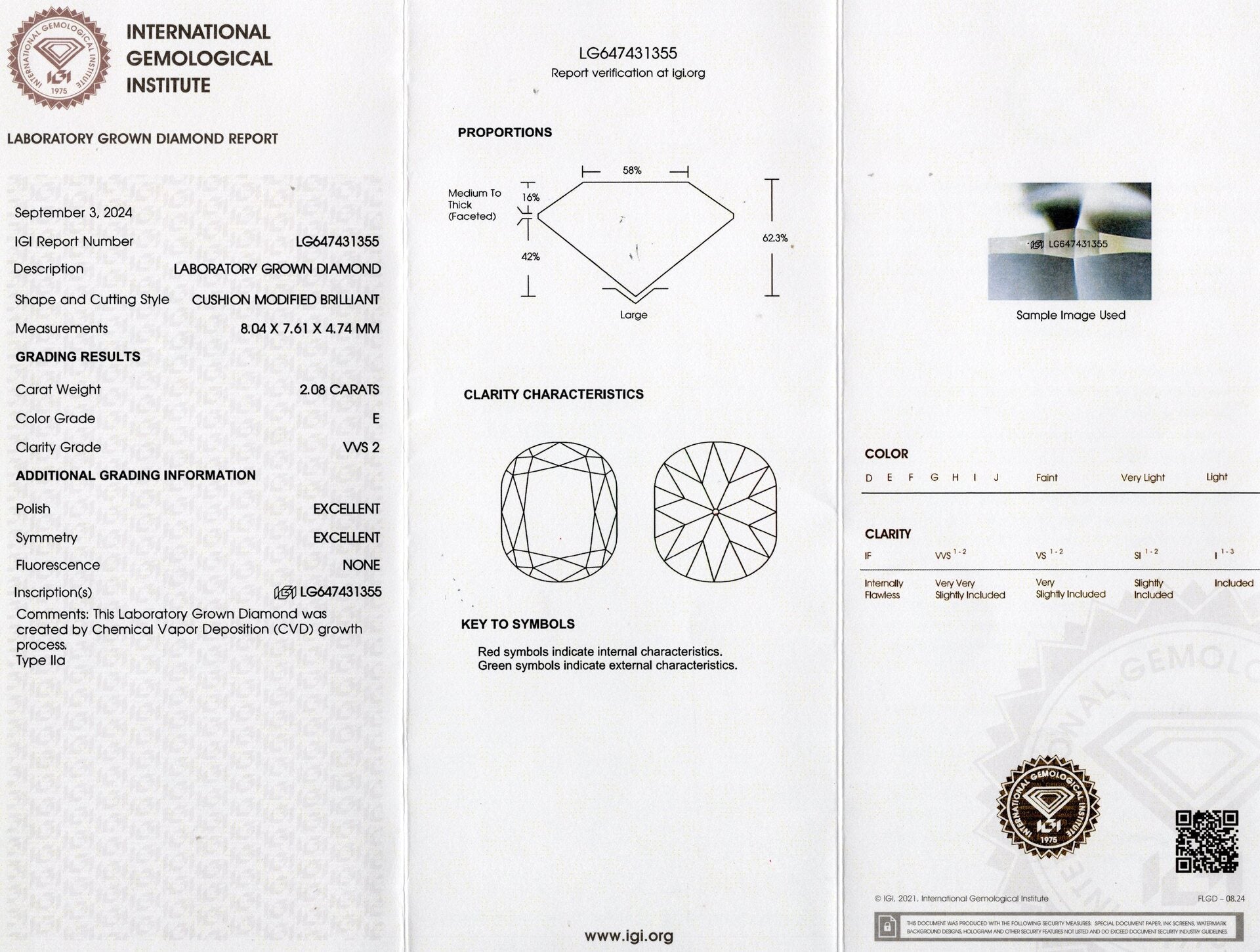 This timeless ring features a 2.08ct old mine cut lab grown diamond paired with a classic solitaire setting.