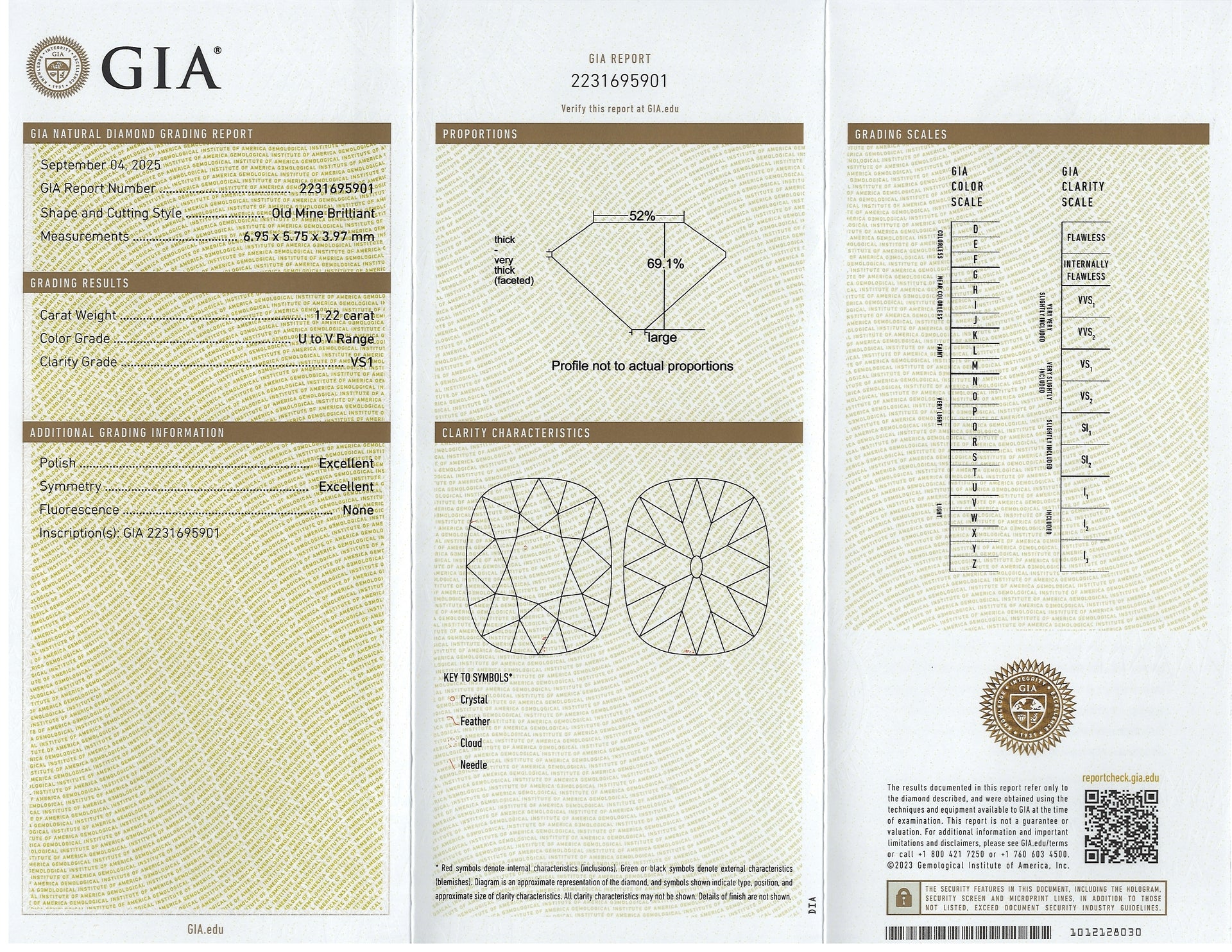 1.22ct OLD MINE CUT DIAMOND GIA CERTIFIED U-V VS1 ELONGATED CUSHION BRILLIANT