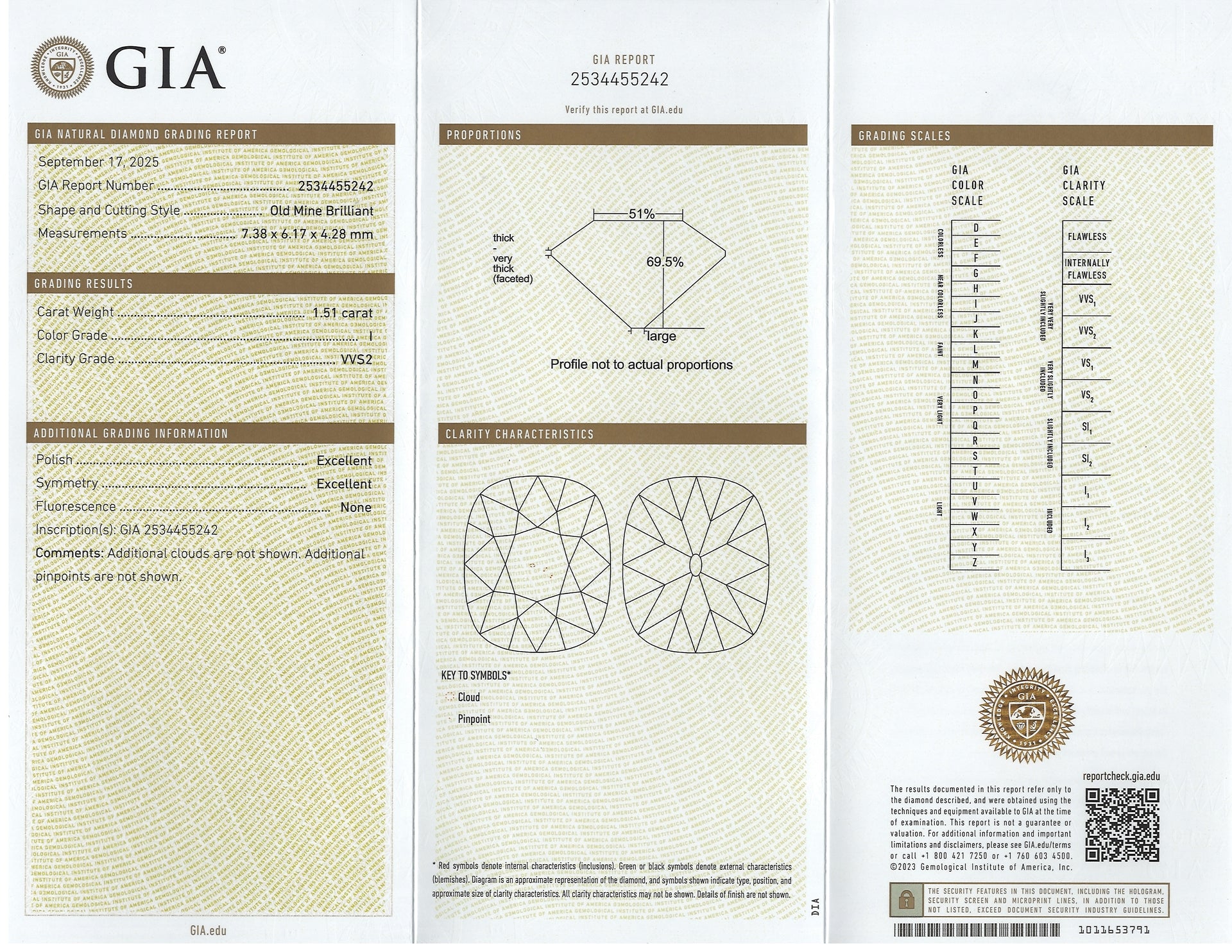 1.51ct OLD MINE CUT DIAMOND GIA CERTIFIED I VVS2 ELONGATED CUSHION BRILLIANT
