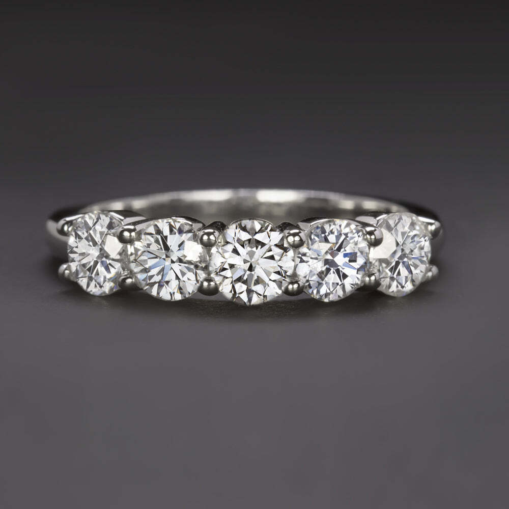 1.56ct NATURAL DIAMOND 5 STONE WEDDING BAND STACKING RING 14k WHITE GOLD 1.5ct