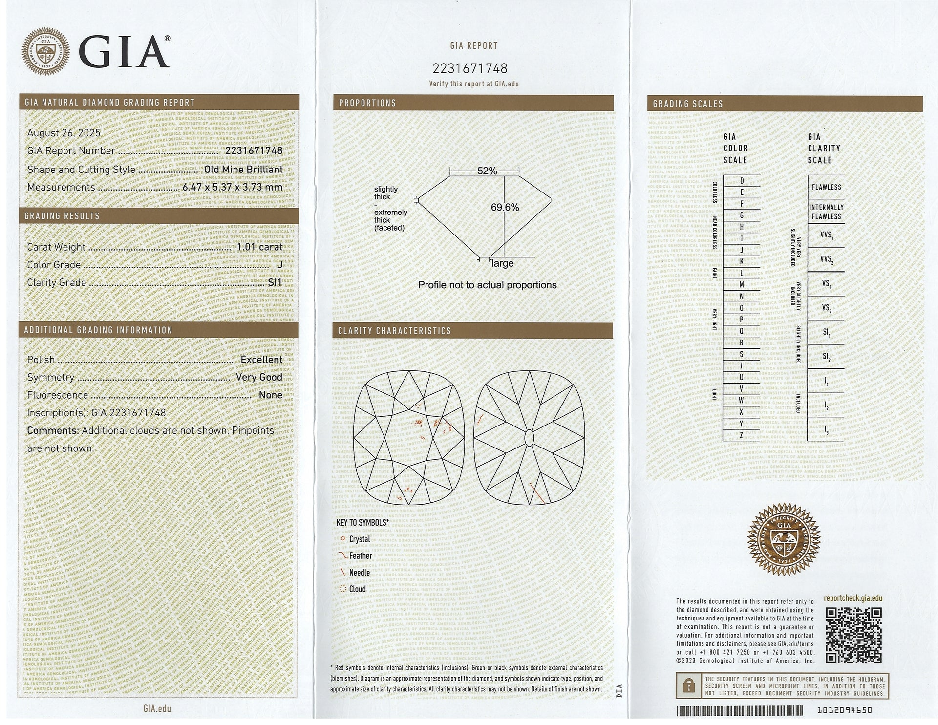- 100% eye clean with SI1 clarity.