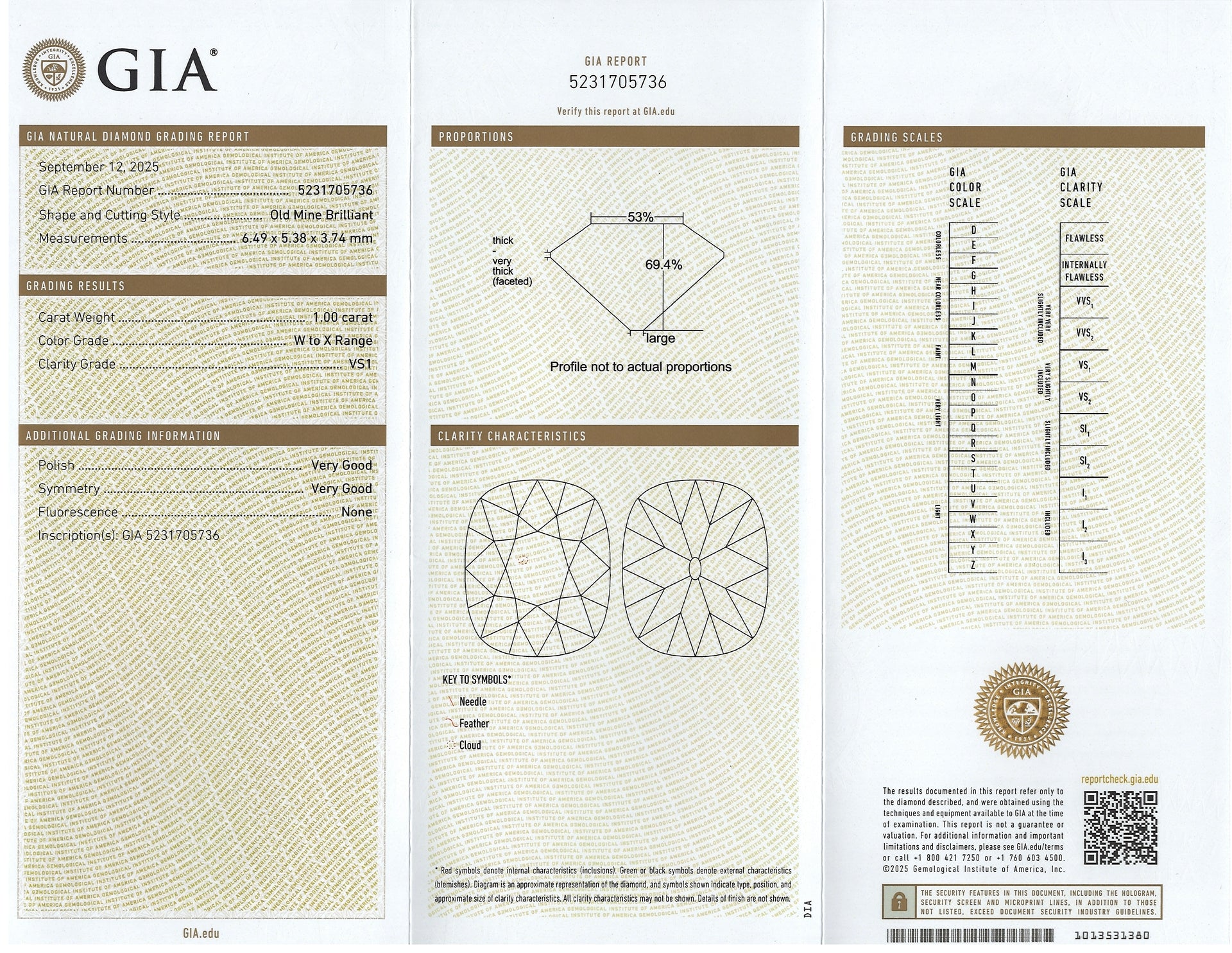 1 CARAT OLD MINE CUT DIAMOND GIA CERTIFIED W-X VS1 ELONGATED CUSHION BRILLIANT