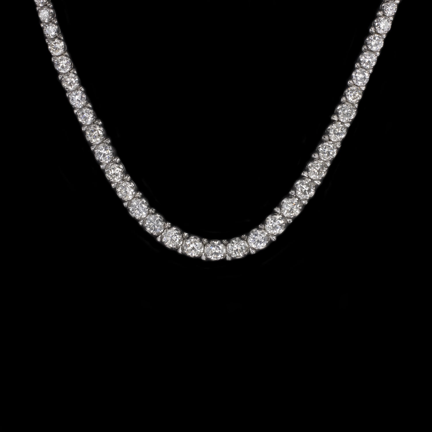 16 CARAT NATURAL DIAMOND RIVIERA NECKLACE 14K WHITE GOLD ROUND CUT TENNIS 16ct