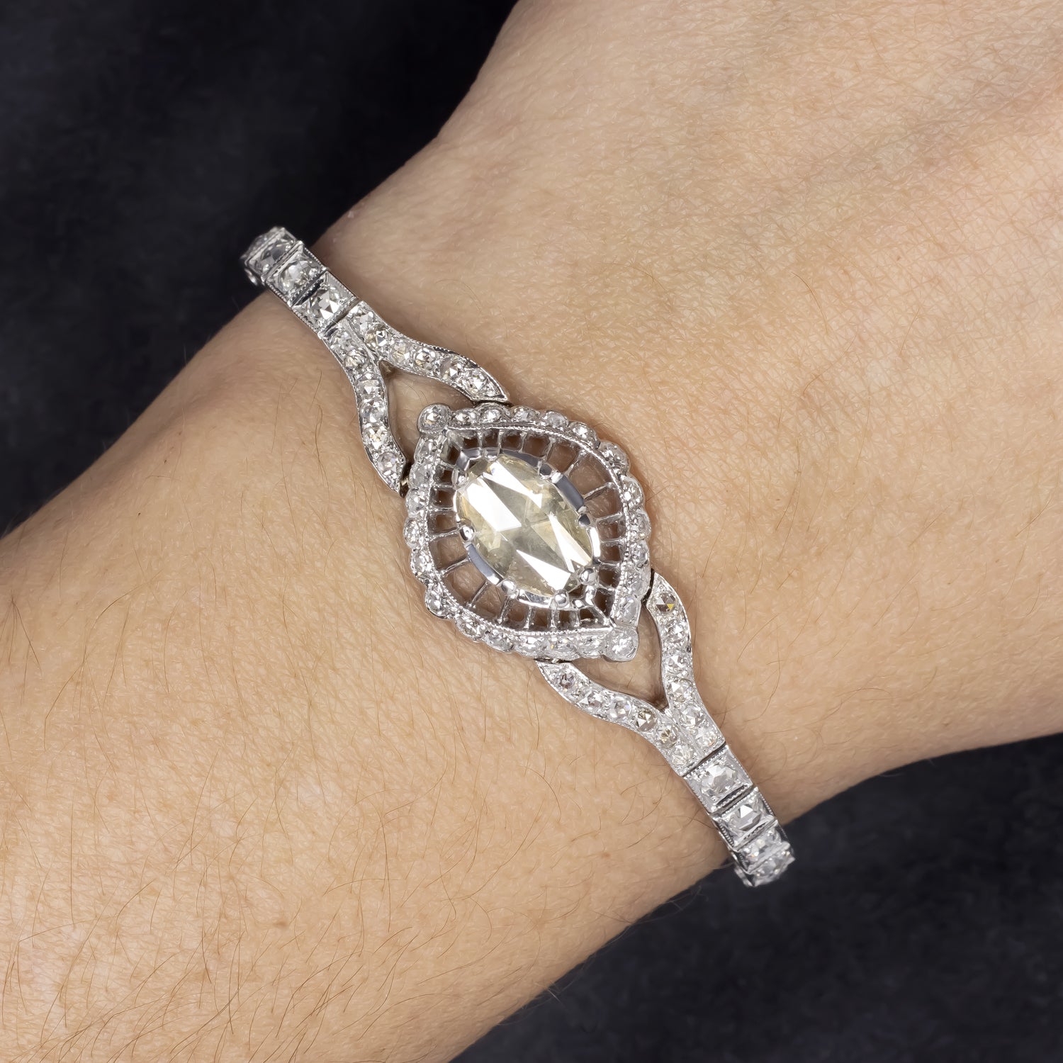 4.93ct ROSE CUT DIAMOND PLATINUM BRACELET ANTIQUE ART NOUVEAU FILIGREE NATURAL