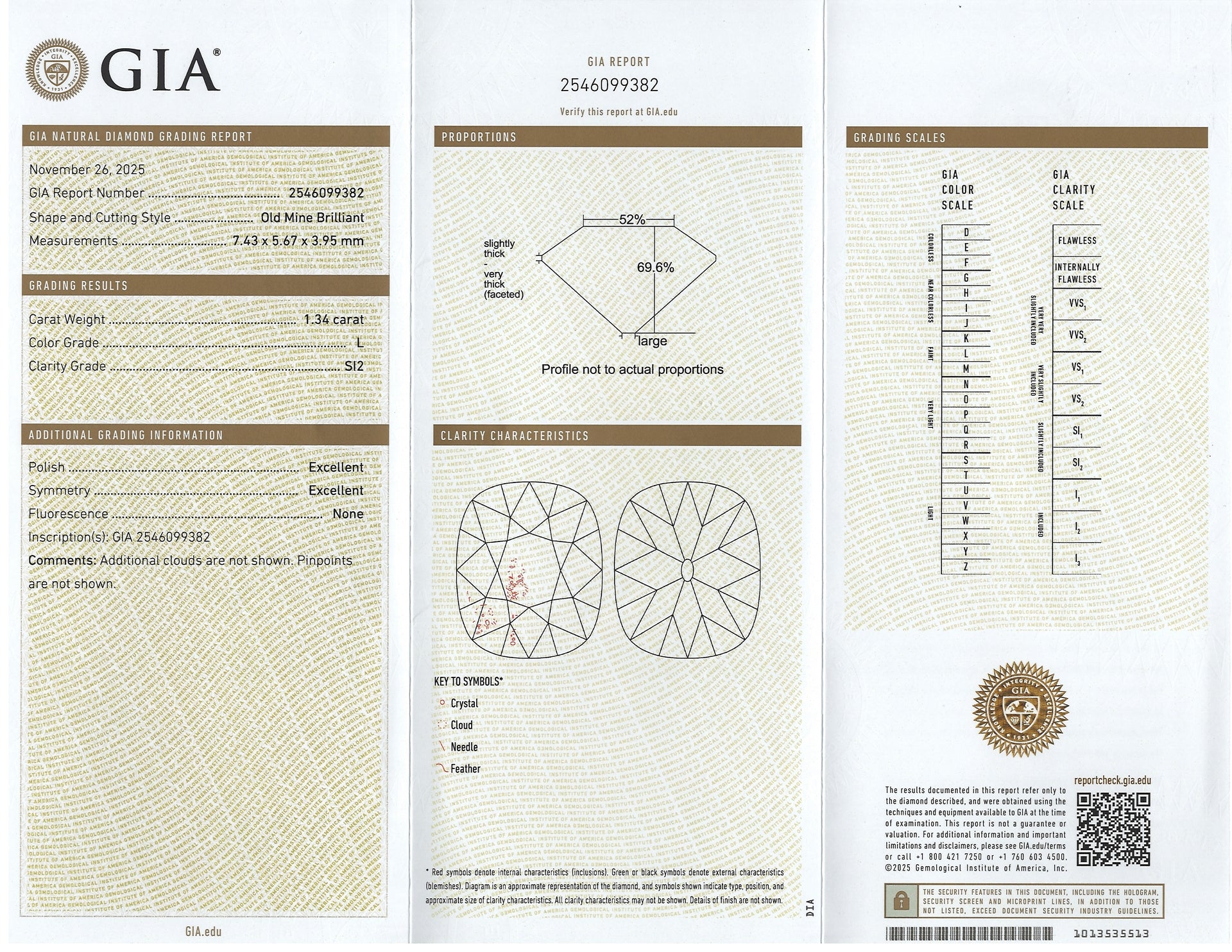 1.34ct OLD MINE CUT DIAMOND GIA CERTIFIED L SI2 ELONGATED CUSHION BRILLIANT