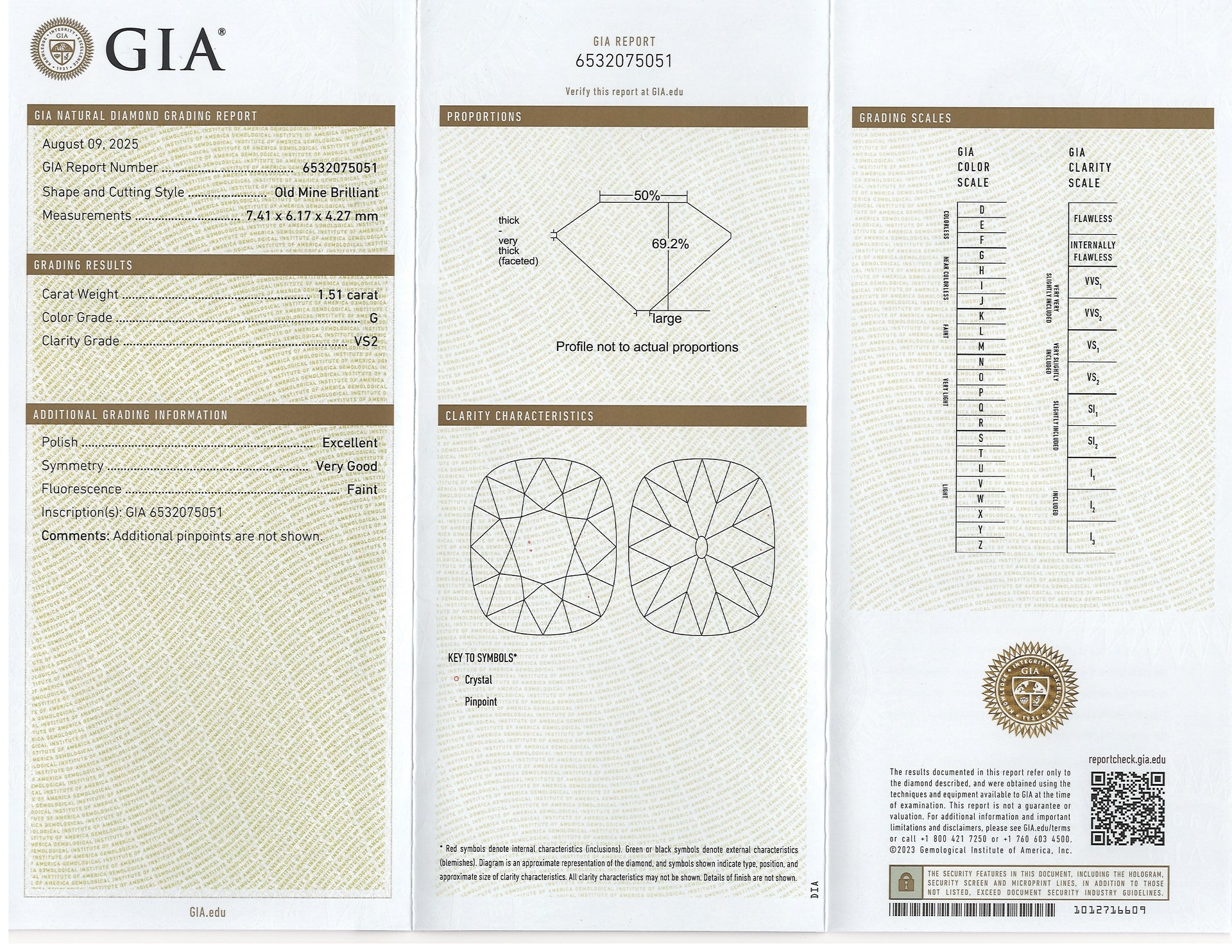 1.5 CARAT OLD MINE CUT DIAMOND GIA CERTIFIED G VS2 ELONGATED CUSHION BRILLIANT