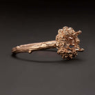 Artfully designed and absolutely unique, this stunning ring setting combines rustic elegance with a sweetly feminine and beautifully modern organic design featuring a bouquet of one dozen intricately rendered roses! The botanical setting is beautifully crafted in 14k rose gold. Once set with a center stone, this gorgeous semi-mount will make a wonderful engagement or cocktail ring! A fully original piece, this ring was designed and crafted in our own Chicago shop. The long stems of this rose bouquet become the shank with a charming, organic branch texture. Elegant, chic, and fully original, this ring setting is an excellent choice for a right hand ring or engagement ring that will stand out from the crowd!