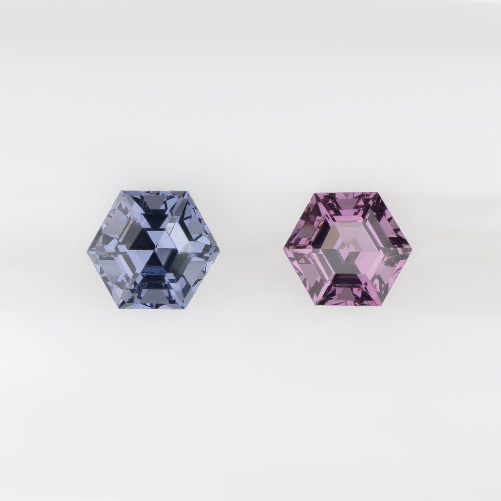 SPINEL MATCHING PAIR STUD EARRINGS TWO TONE PINK BLUE HEXAGON SHAPE CUT 1.01ct