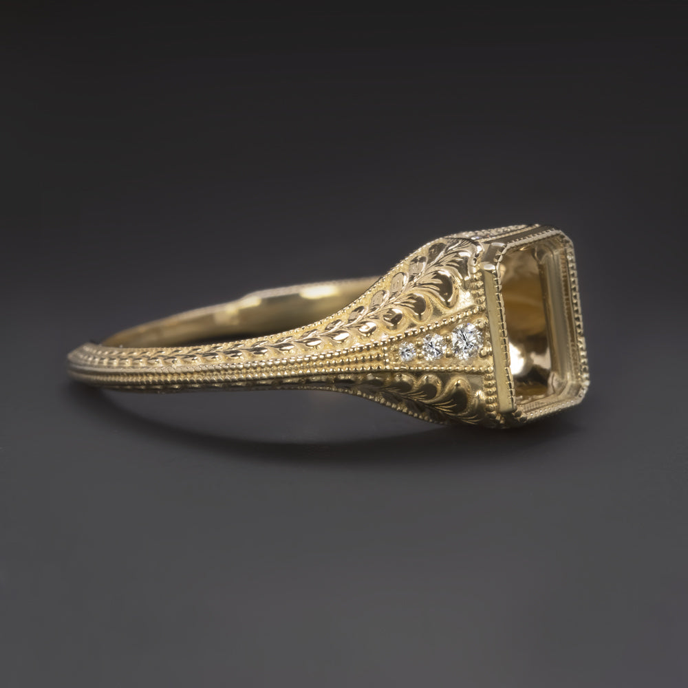 Some designs will not work well for different center shapes or require a more extensive modification to the setting. These modifications are not covered by our standard setting and finishing fee and require consultation from our sales team. Please feel free to reach out via email, and we'll work with you to create the piece you're looking for!