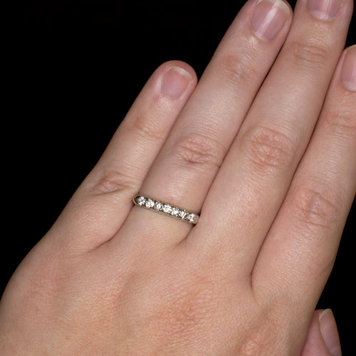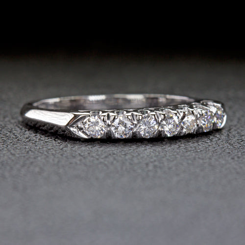 This diamond band features very high quality F-G VS diamonds in a timeless design. It is an excellent choice for a wedding band or stacking ring.