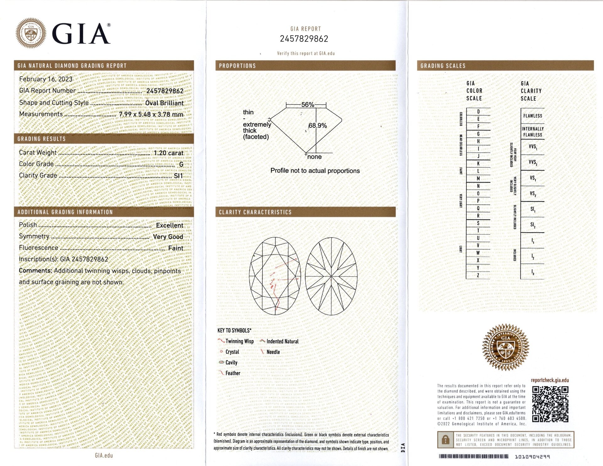 1.20c GIA CERTIFIED G SI1 OVAL SHAPE CUT DIAMOND LOOSE NATURAL ENGAGEMENT 1.25ct