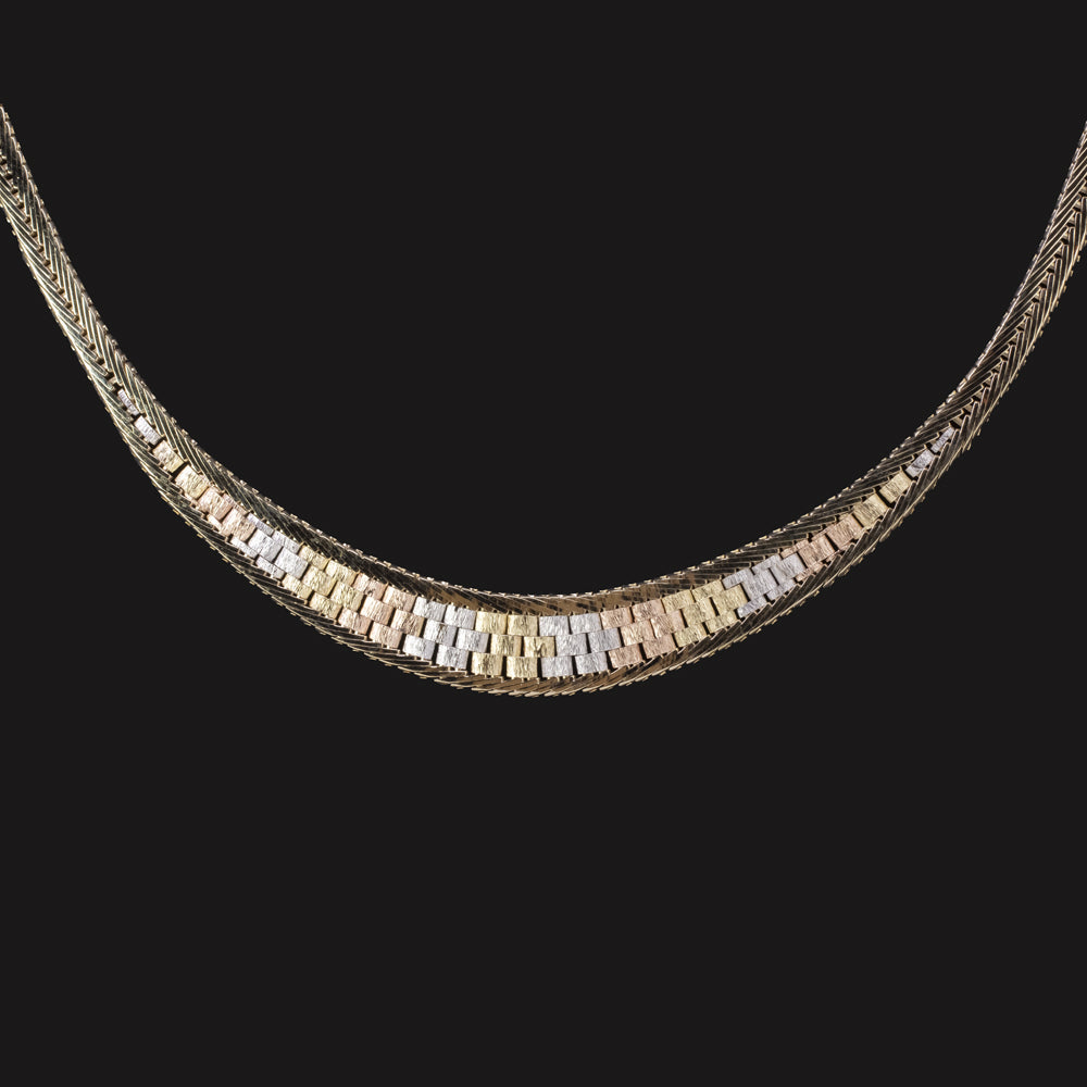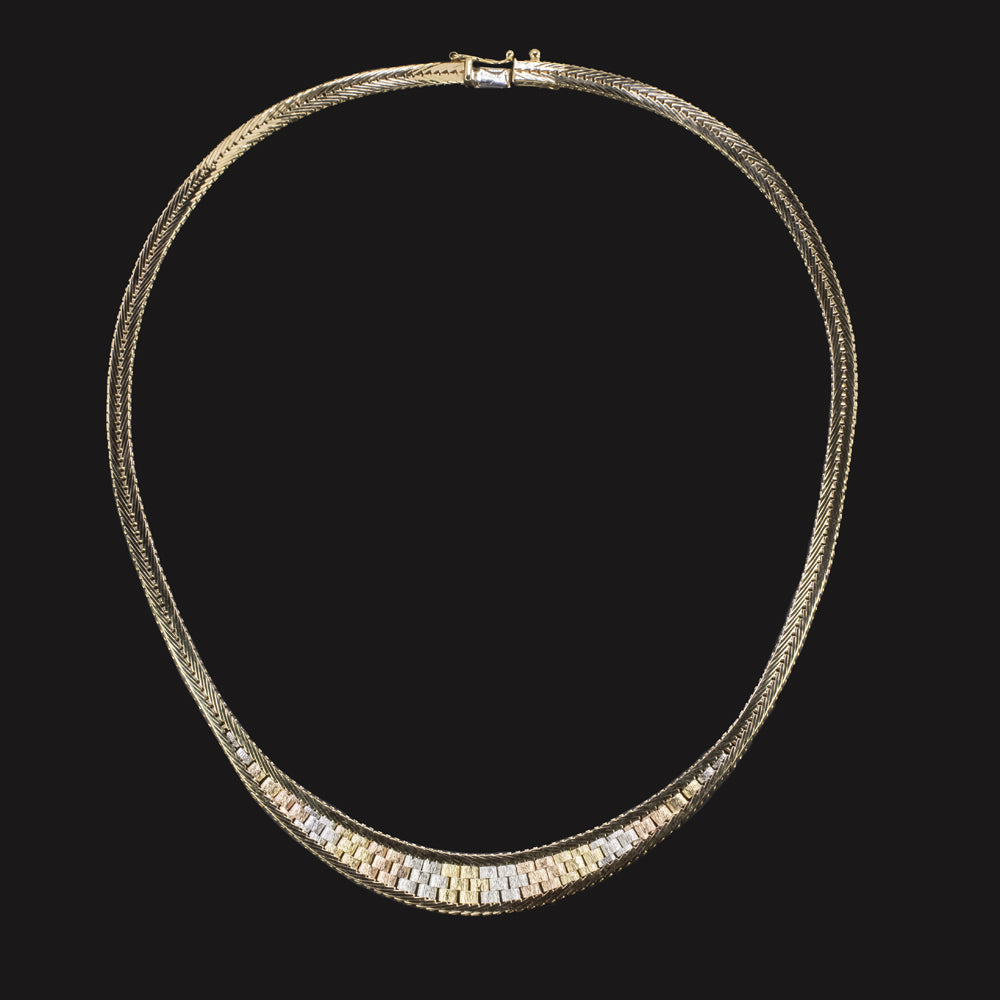 This 14k tri tone gold is masterfully crafted with a unique look and a substantial feel!