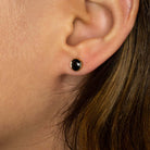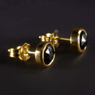 14K YELLOW GOLD BLACK SPINEL STUD EARRINGS 5mm ROUND ROSE CUT BEZEL MINIMALIST