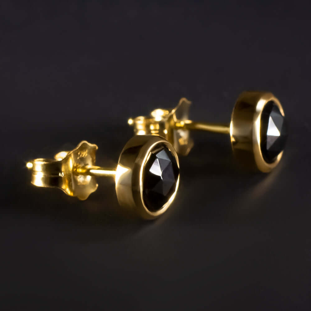 This chic and elegant pair of stud earrings feature rose cut black spinels set in sleek 14k yellow gold bezel settings. Effortlessly elegant, this minimalist look is the perfect addition to any outfit and is an excellent choice for everyday wear! The rich warmth of the yellow gold offers a striking complement to the perfectly even black of the spinel. Rich in contrast with an air of sleek, modern elegance, these studs are a perfect choice for a gift or a treat for yourself.