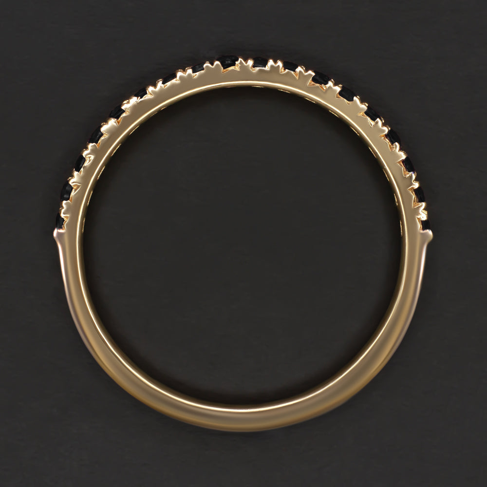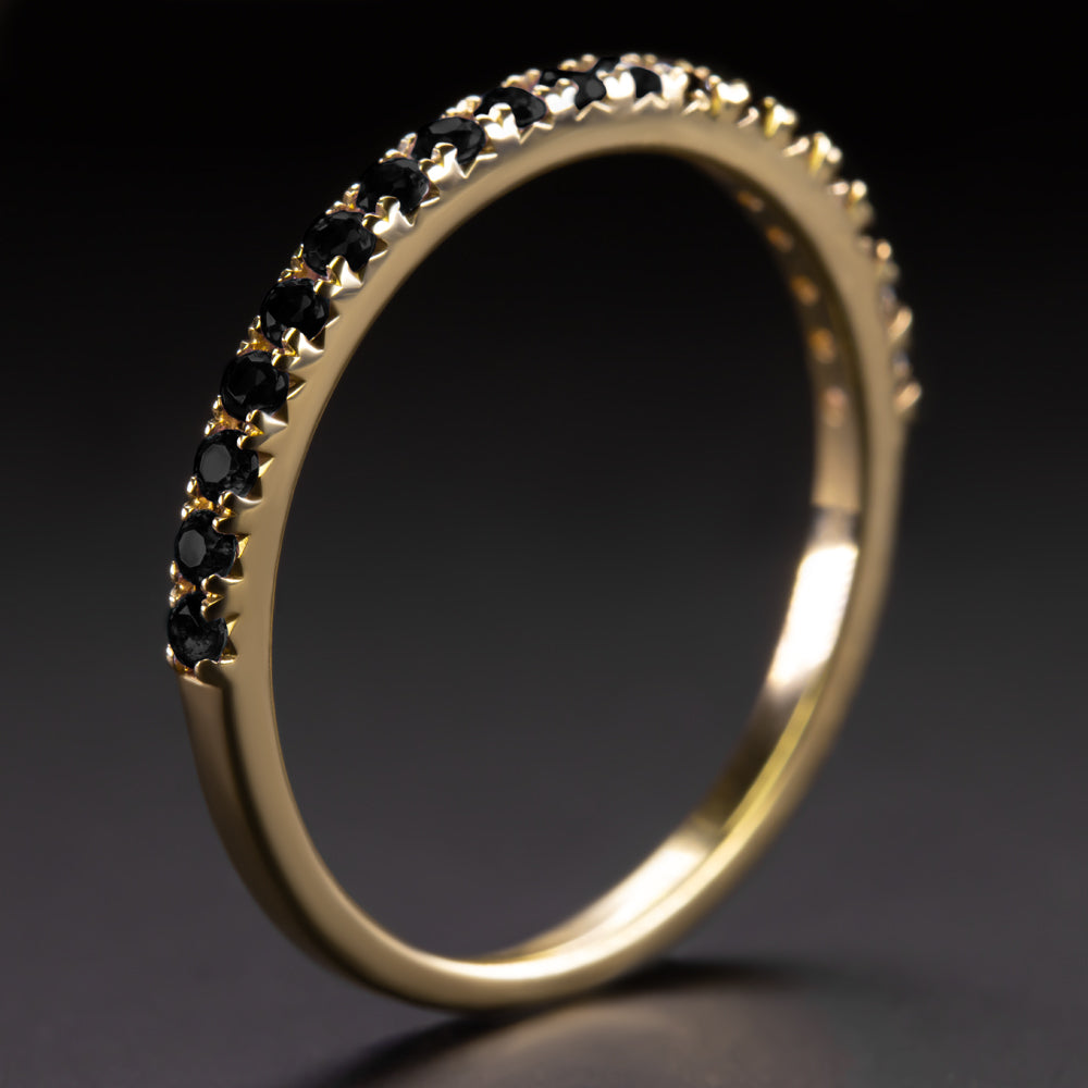 BLACK SPINEL 14k YELLOW GOLD BAND HALF ETERNITY RING NATURAL GEMSTONE STACKING