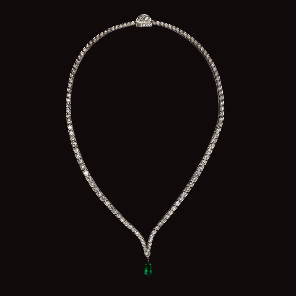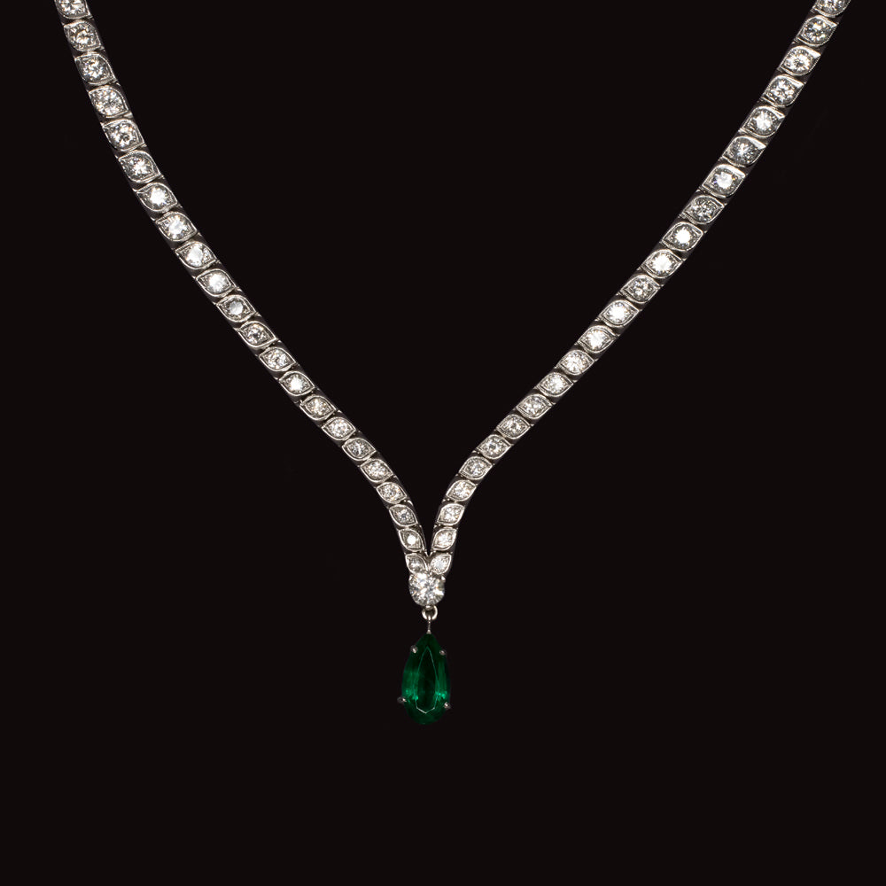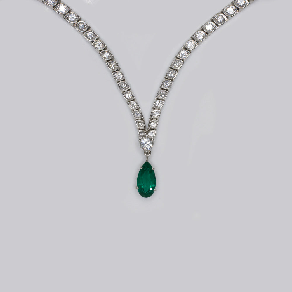 CHATHAM EMERALD 6.75ct NATURAL DIAMOND NECKLACE PLATINUM 39.4 gram RIVIERE DROP