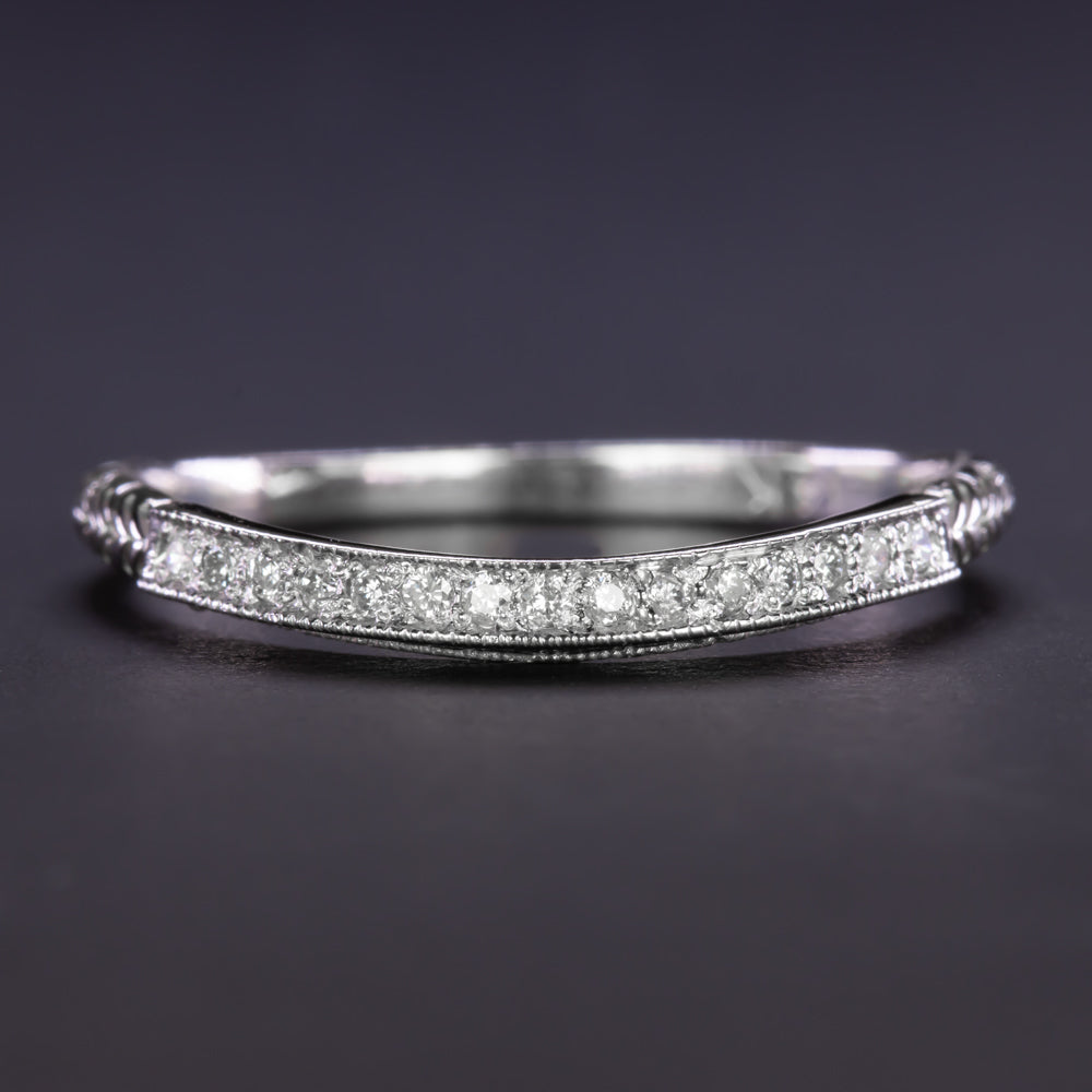 DIAMOND CONTOUR WEDDING BAND VINTAGE STYLE CURVED STACKING RING 14k WHITE GOLD