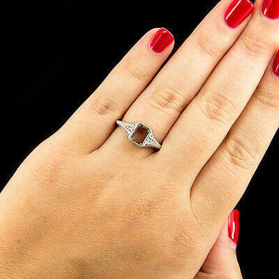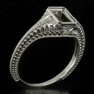 DIAMOND MOUNTING VINTAGE STYLE ENGAGEMENT RING 7X5 EMERALD CUT RADIANT SETTING