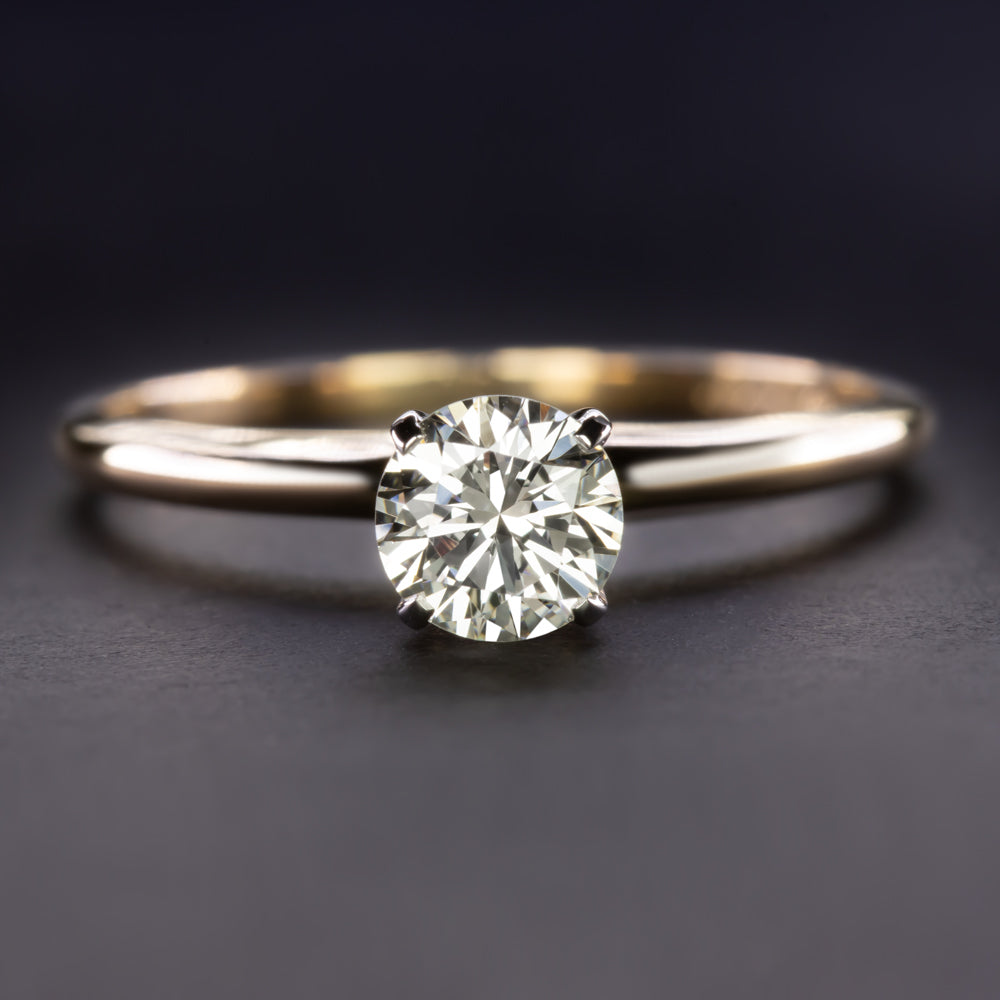 DIAMOND SOLITAIRE ENGAGEMENT RING 1/2ct H VS ROUND CUT 14k TWO TONE YELLOW GOLD