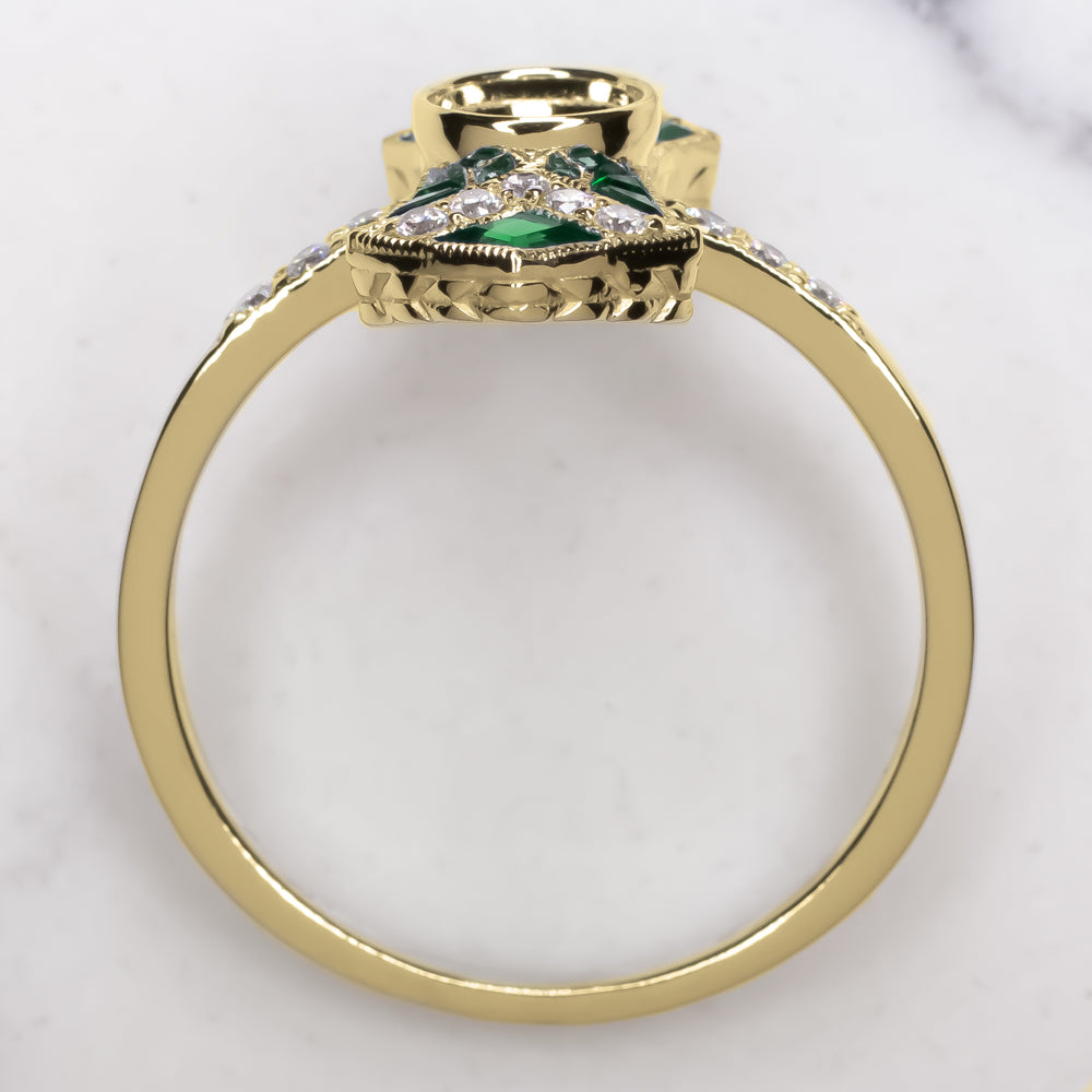EMERALD DIAMOND ENGAGEMENT RING SETTING VINTAGE YELLOW GOLD ART DECO SEMI MOUNT