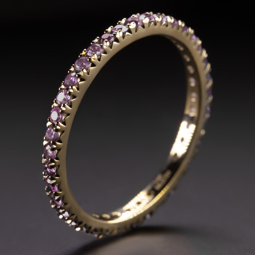 RHODOLITE GARNET 14K YELLOW GOLD ETERNITY RING STACKING WEDDING BAND NATURAL GEM