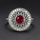 RUBY DIAMOND VINTAGE STYLE COCKTAIL RING FILIGREE HALO 14k WHITE GOLD NATURAL