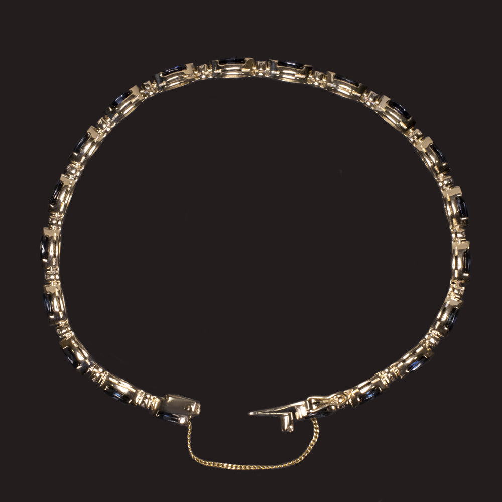 SAPPHIRE DIAMOND TENNIS BRACELET 7.25ct NATURAL BLUE MARQUISE 14k YELLOW GOLD