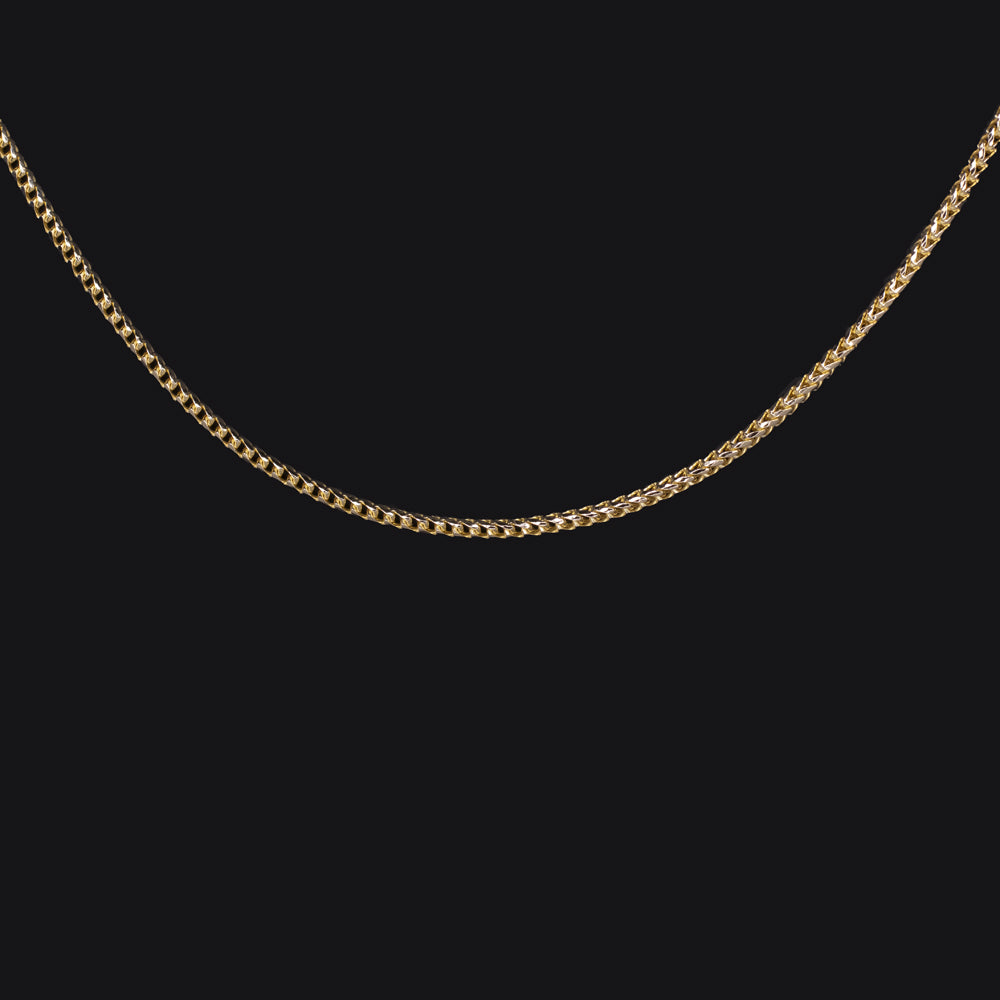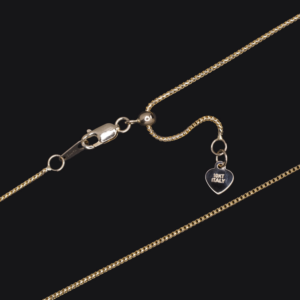 This 10k yellow gold wheat chain has a sturdy construction and a slinky look.