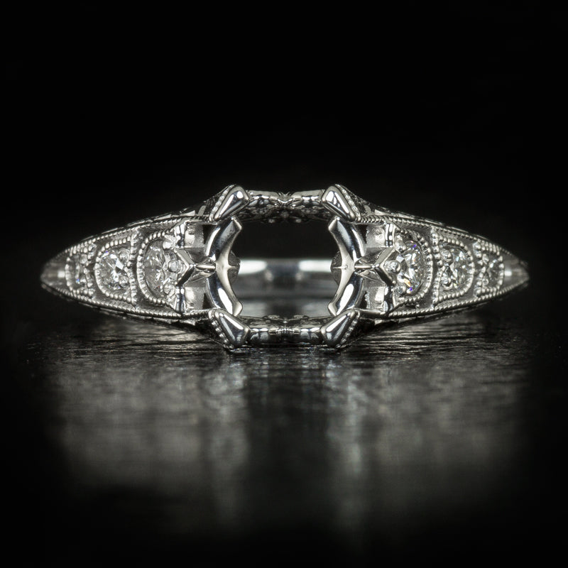 VINTAGE STYLE DIAMOND ENGAGEMENT RING SETTING ART DECO ROUND CUSHION FILIGREE