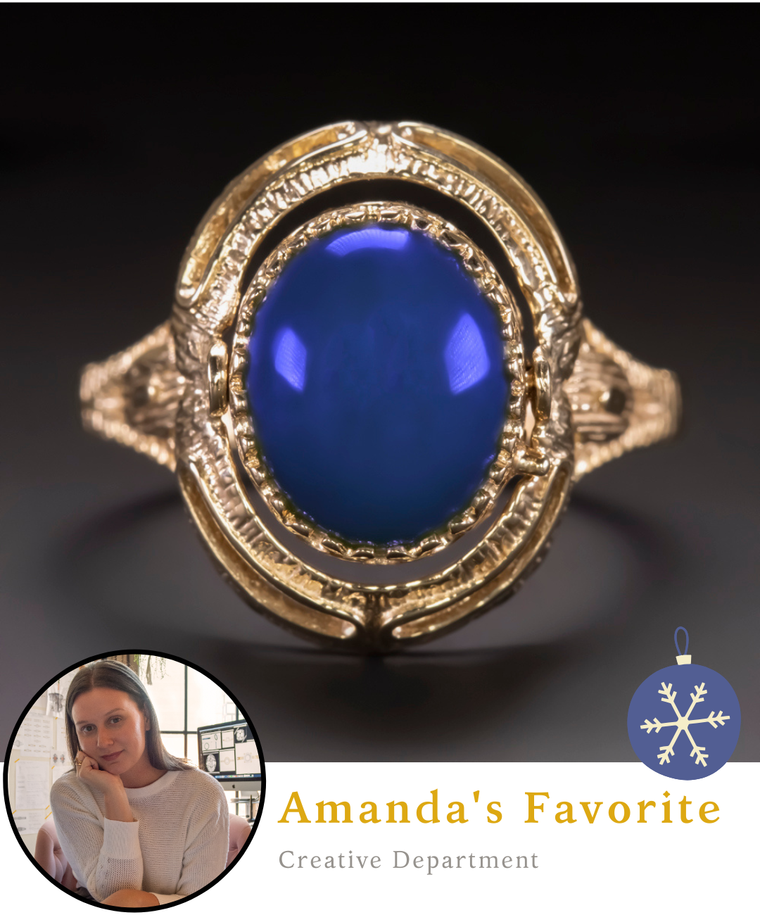 Vintage flip rings are a charming find! This one has a big look and versatility with the lapis lazuli or jade center.