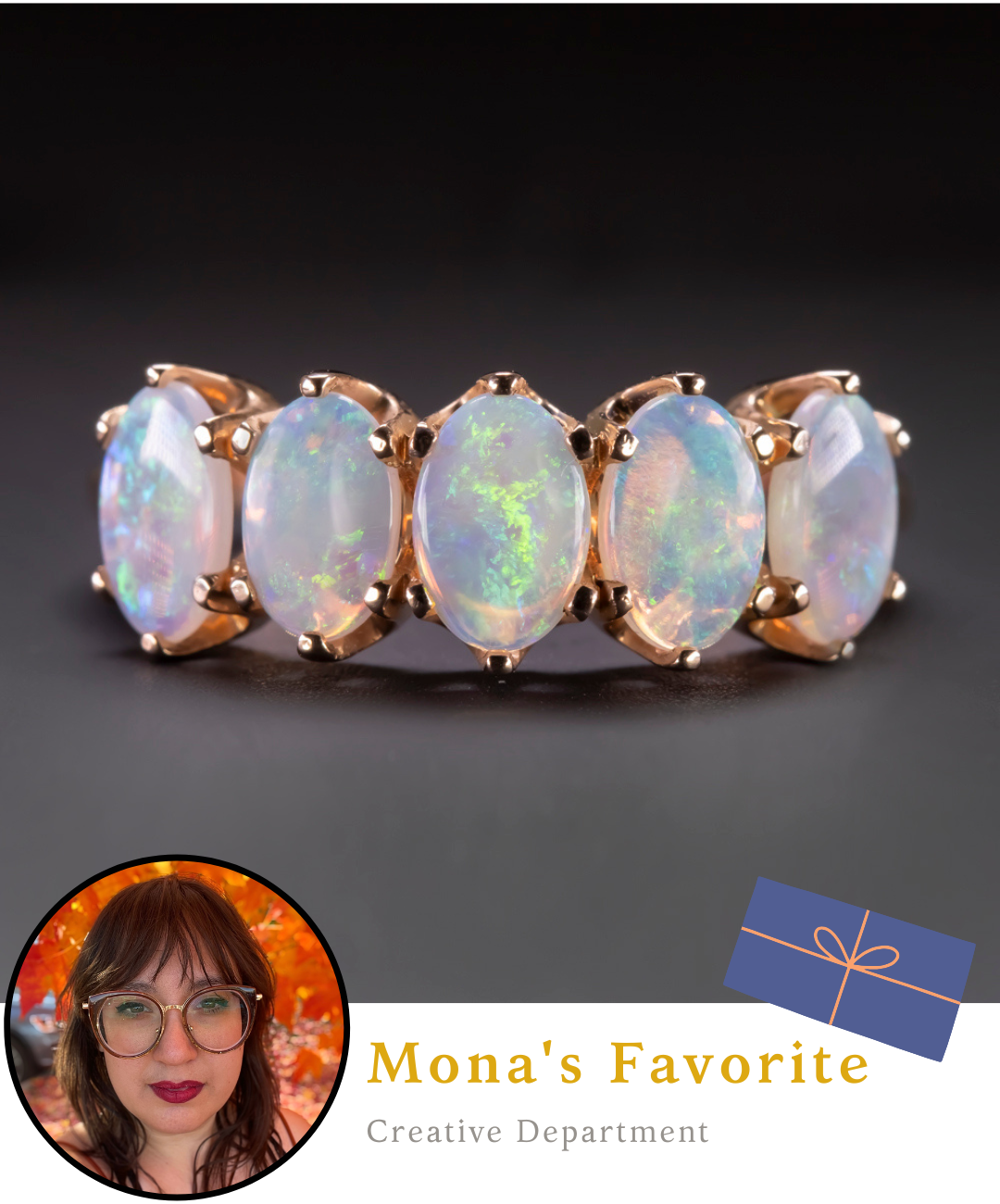 It's a classic piece that can fit in with a variety of aesthetics. With its generous Victorian style buttercup settings it works just as well paired with sleek modern pieces as it does vintage and antique.