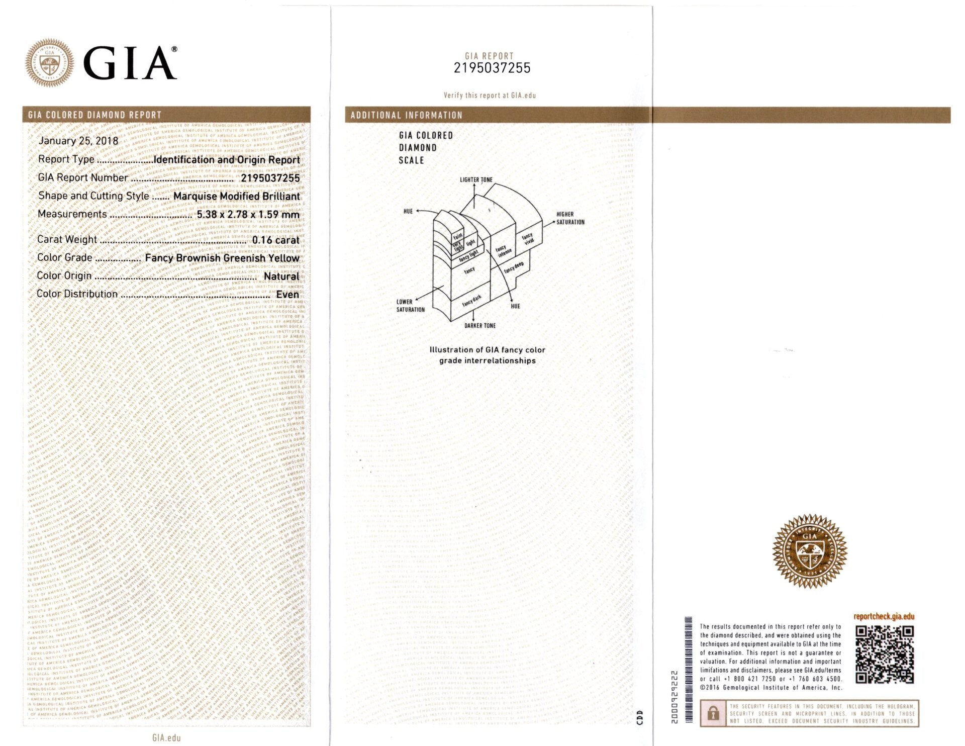 0.16ct DIAMOND GIA CERTIFIED FANCY GREEN YELLOW MARQUISE SHAPE NATURAL LOOSE