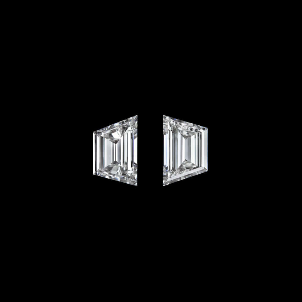 The diamonds are being sold loose, but they can be mounted upon request. With their charming squat trapezoid shape, they would be perfect to accent a larger centerpiece in a three stone ring or as part of a more elaborate design. We would love to share our ideas for custom designs, so please don’t hesitate to inquire! It is rare to find matched diamonds with this cut, so make them yours before they’re snatched up!
