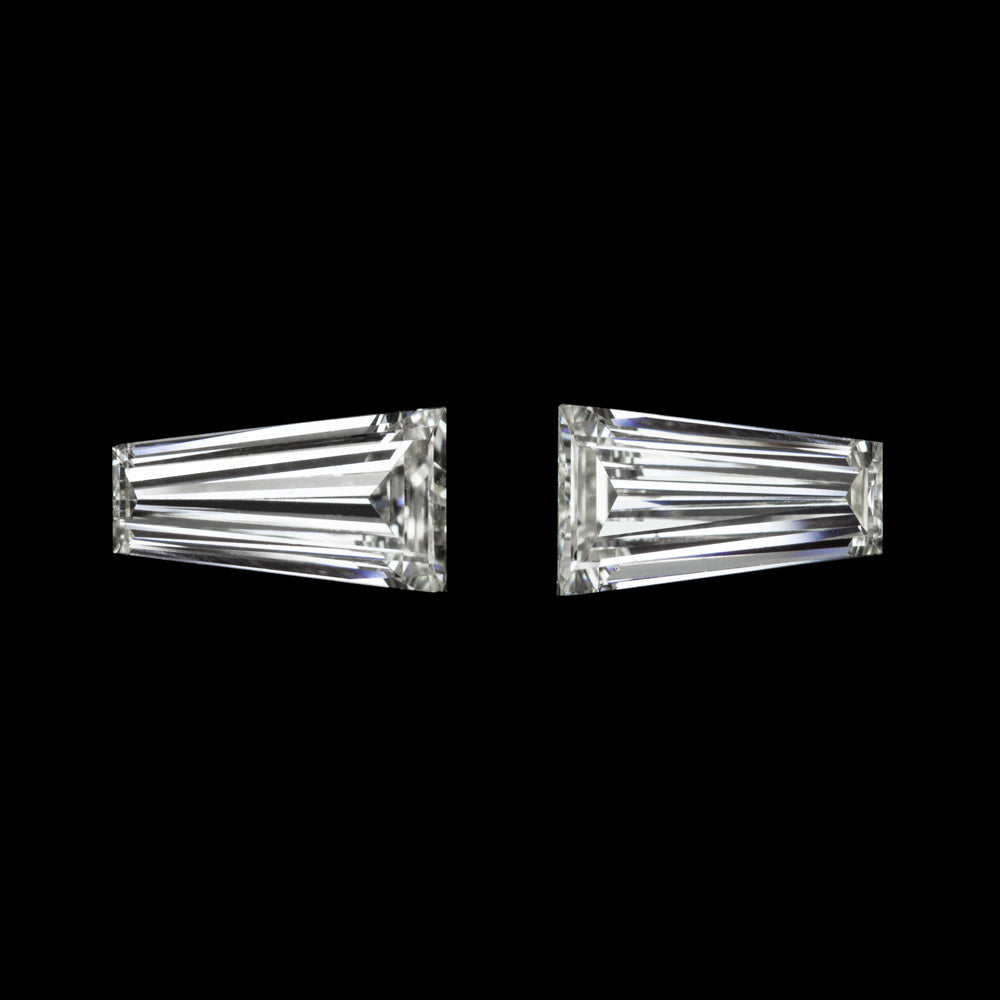 The diamonds are being sold loose, but they can be mounted upon request. With their long tapered baguette shape, they would be perfect to accent a larger centerpiece in a three stone ring or as part of a more elaborate design. It is rare to find matched diamonds with this cut, so make them yours before they’re snatched up!