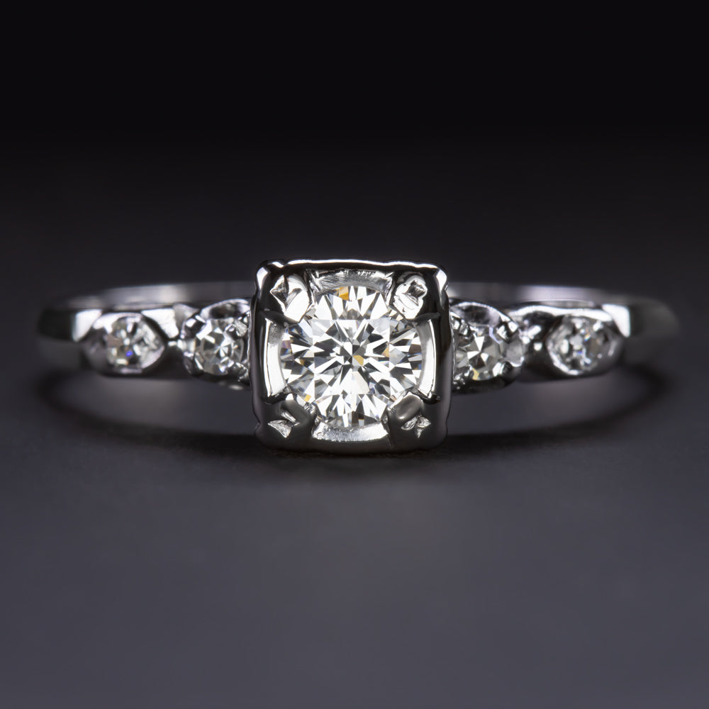 0.35ct F VS1 DIAMOND VINTAGE ENGAGEMENT RING MID CENTURY CLASSIC 14k WHITE GOLD