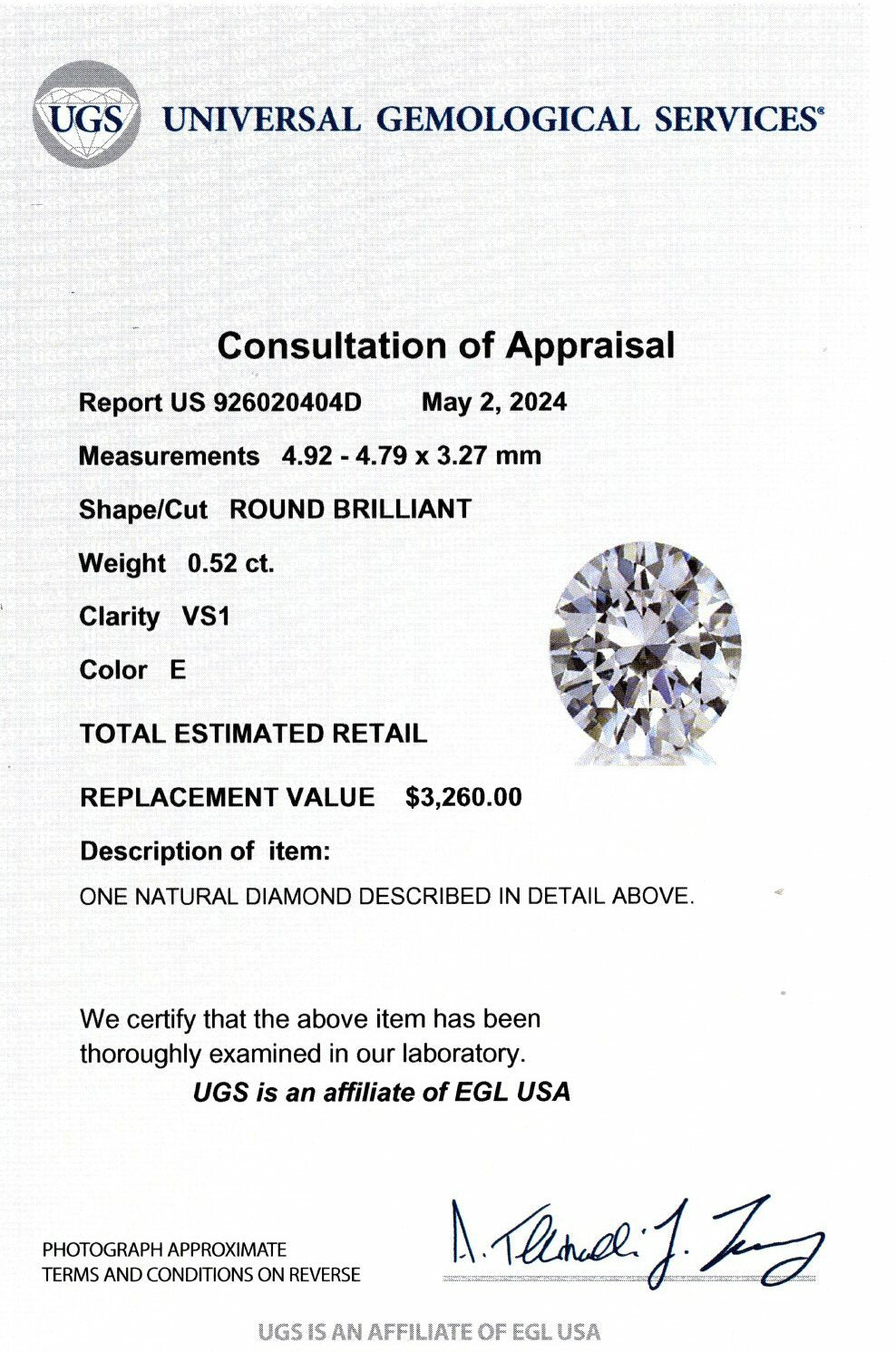 - 0.52ct natural diamond