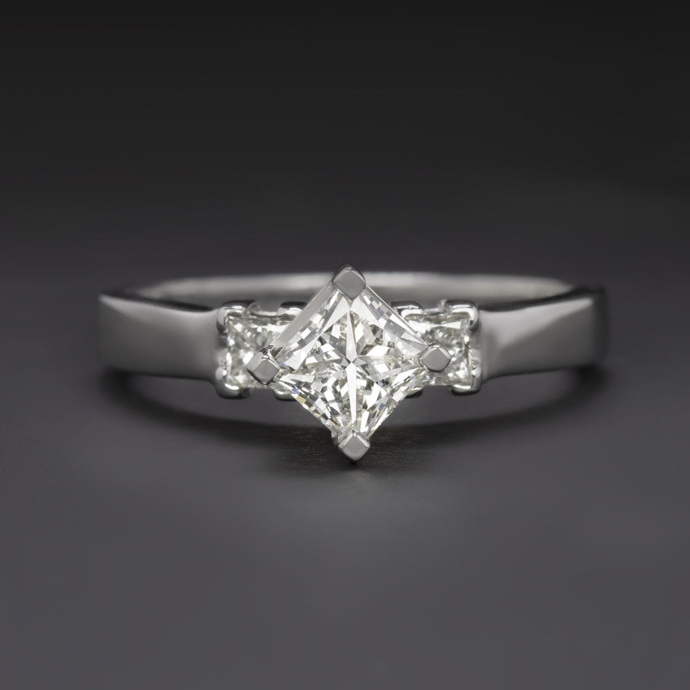 0.71ct GIA CERTIFIED G SI1 PRINCESS CUT DIAMOND ENGAGEMENT RING SQUARE 3 STONE