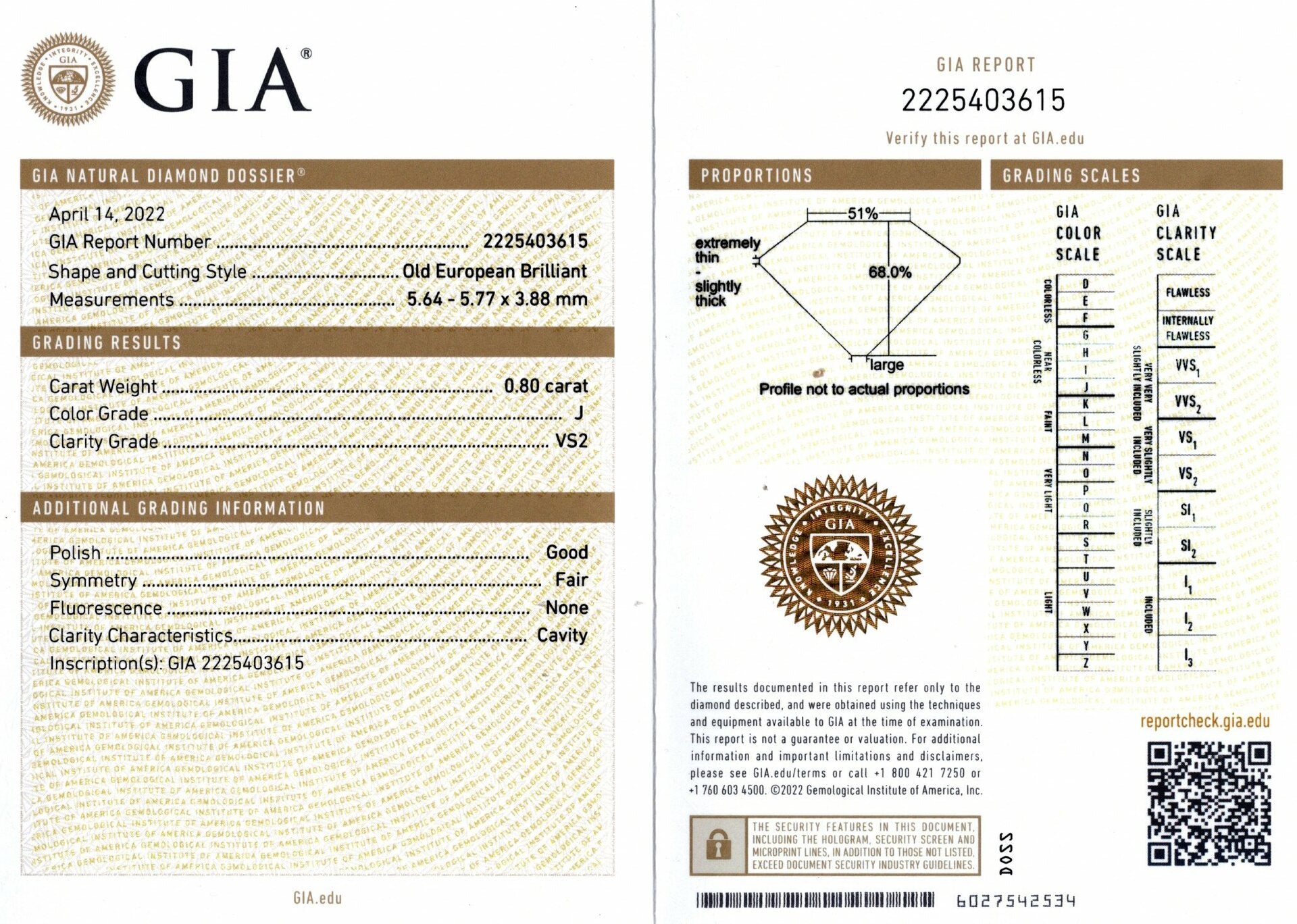 0.80ct OLD EUROPEAN CUT DIAMOND GIA CERTIFIED J VS VINTAGE LOOSE NATURAL ESTATE