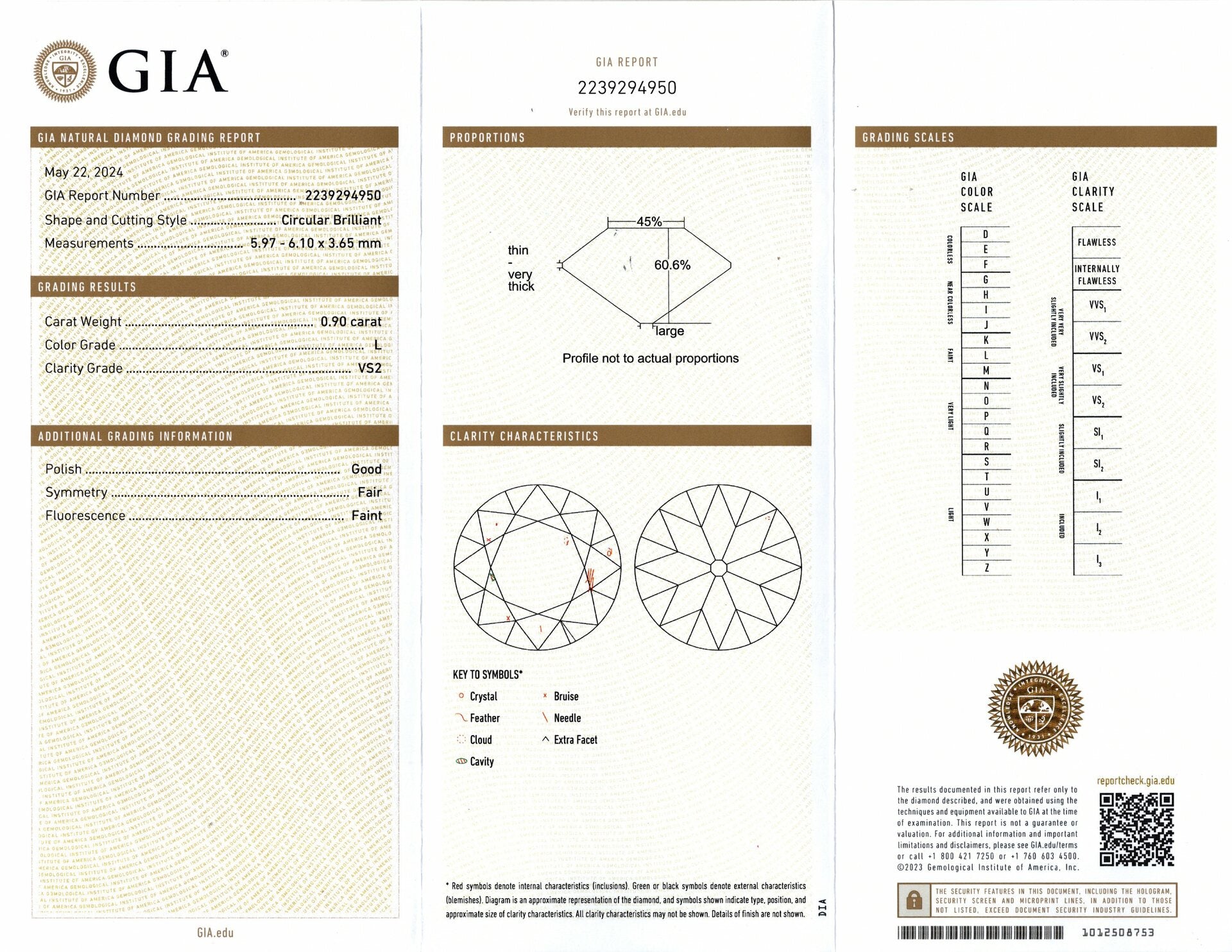 0.90ct OLD EUROPEAN CUT DIAMOND GIA CERTIFIED L VS2 LOOSE NATURAL VINTAGE ESTATE