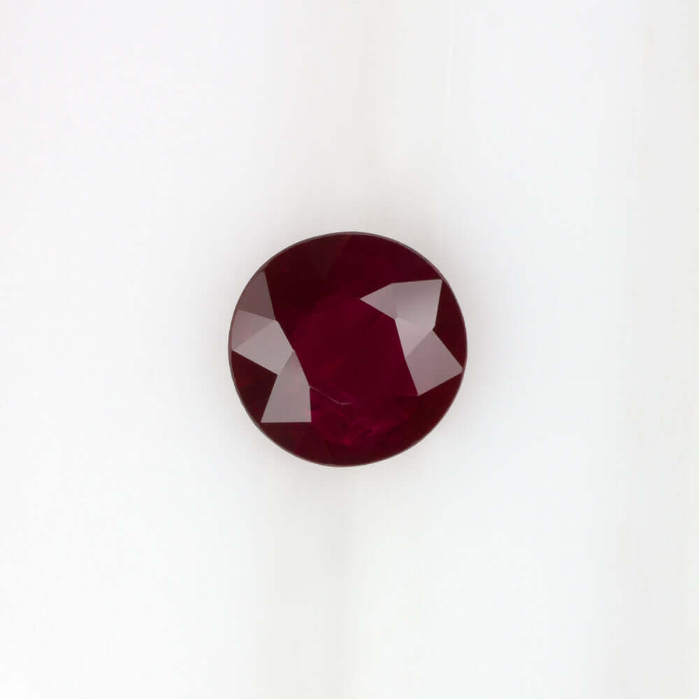 This gorgeous 1.04ct round cut ruby displays rich red color and great translucency! The color is a vibrant true red hue. The color is an excellent balance, very rich and saturated, and not overly deep. The ruby is round cut, which is quite rare to find. The ruby is natural and earth mined. It is not glass filled (also known as composite rubies) like the majority of cheap rubies flooding the market. This stone is pure ruby, unlike the composites which are a mixture which includes very low quality ruby material.