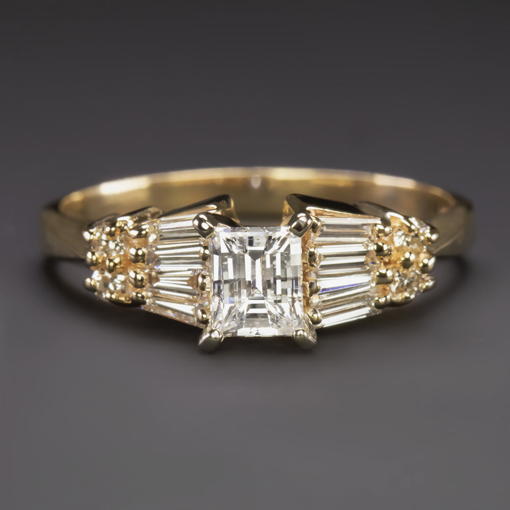 1.05ct D-E SI1 ROYAL CREST CUT DIAMOND ENGAGEMENT RING YELLOW GOLD EMERALD SHAPE