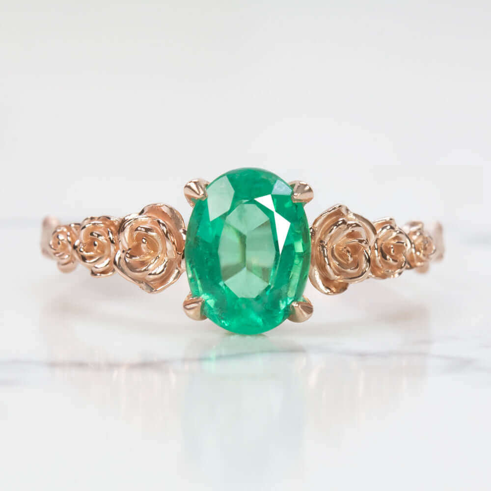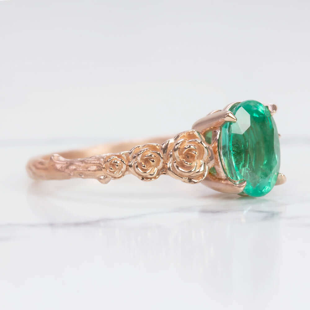 1.15ct OVAL CUT EMERALD RING FLOWER BRANCH 14k ROSE GOLD NATURAL GREEN COCKTAIL