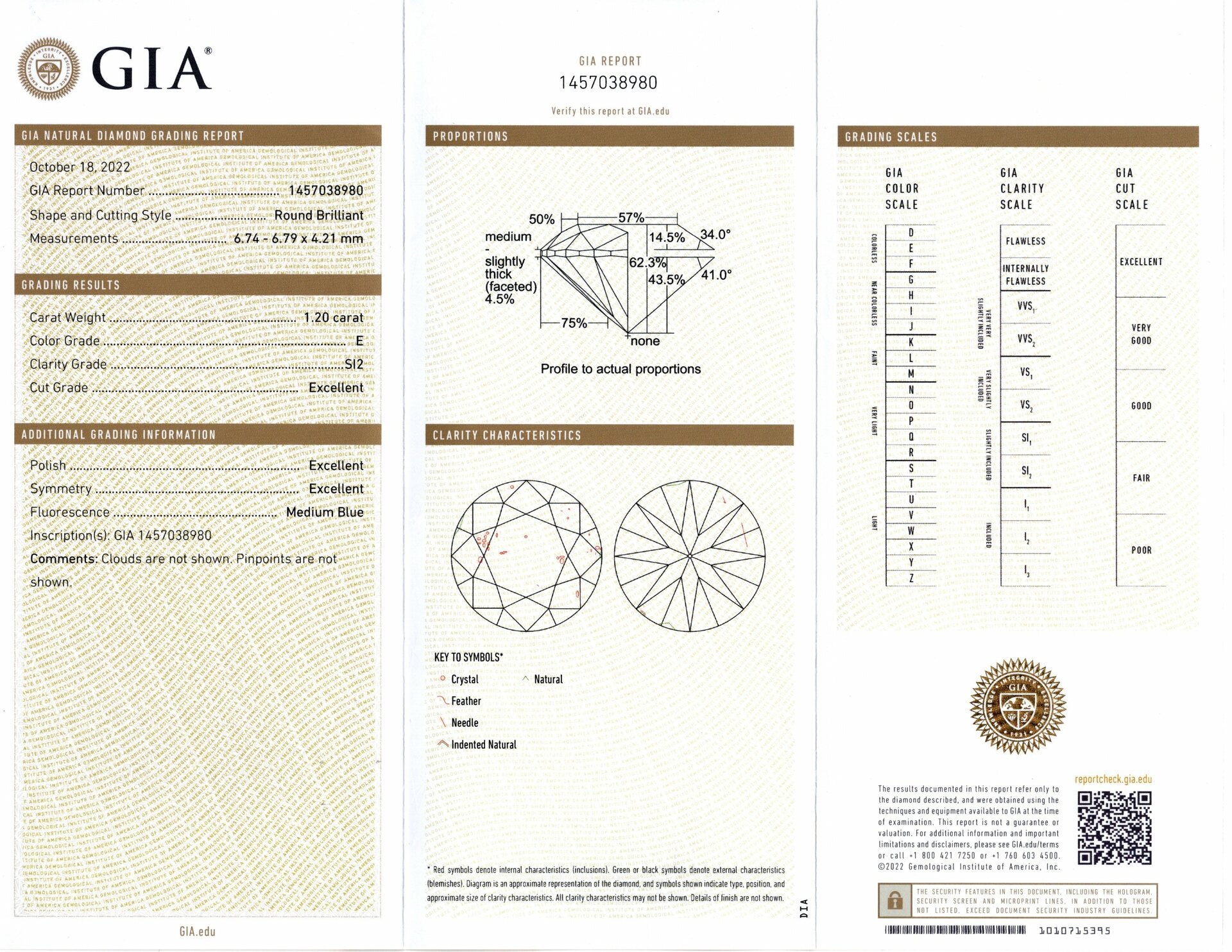 1.20ct GIA CERTIFIED E SI2 EXCELLENT CUT DIAMOND ROUND BRILLIANT LOOSE NATURAL