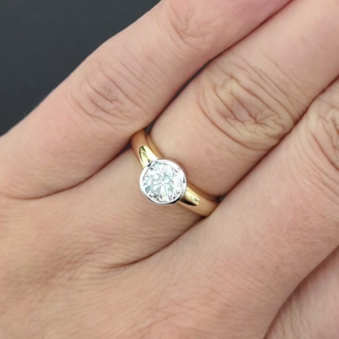 1.23ct DIAMOND SOLITAIRE ENGAGEMENT RING ROUND BRILLIANT CUT BEZEL SET CHUNKY